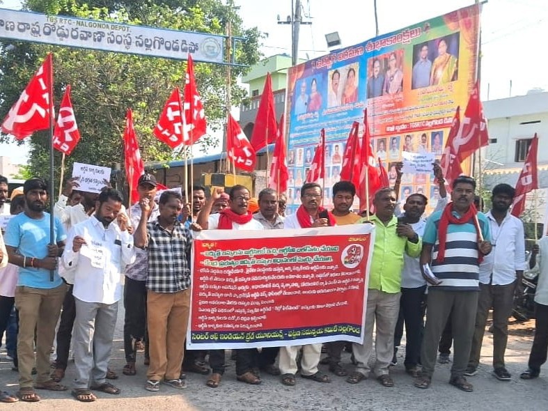 NLG: ఎలక్ట్రిక్ బస్సులు ఆర్టీసీకే అప్పజెప్పి ఆర్టీసీని బలోపేతం చేయాలని సీఐటీయూ, ఆర్టీసీ కార్మిక నాయకులు, డిమాండ్ చేశారు. రాష్ట్ర కమిటీ పిలుపు మేరకు నల్గొండ దొడ్డి కొమురయ్య భవన్ నుంచి ర్యాలీగా వెళ్లి బస్ డిపో ముందు మంగళవారం ధర్నా నిర్వహించారు.