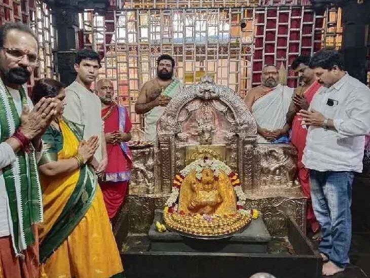 విశాఖ: బురుజుపేట కనకమహాలక్ష్మి అమ్మవారి ఆలయంలో మంగళవారం వేకువజాము నుంచి అర్చకులు అమ్మవారికి ప్రత్యేక పూజలు నిర్వహించారు. అనంతరం అమ్మవారికి బంగారు పుష్పాలతో అష్టాదళ పద్మారాధన జరిపారు. అష్టదళ పద్మా రాధన సేవలో ఉభయ దాతలు పాల్గొని అమ్మవారిని