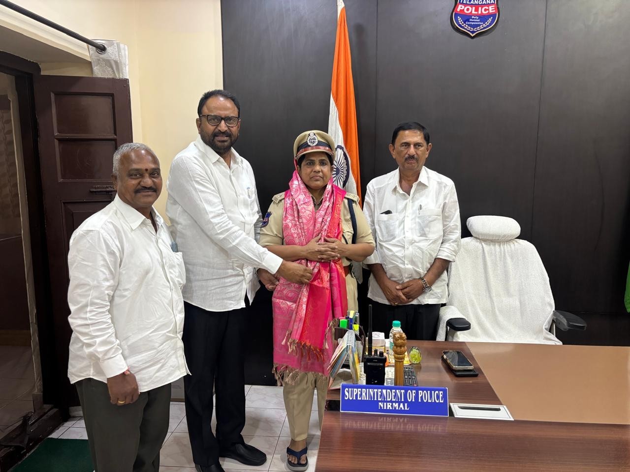 నిర్మల్ జిల్లా ఎస్పీ జానకి షర్మిలకు మహిళల భద్రతలో చేసిన విశిష్ట సేవలకు జాతీయ స్థాయిలో స్కోచ్ అవార్డు లభించింది. ఈ సందర్భంగా కాంగ్రెస్ నాయకుడు కూచాడి శ్రీహరిరావు బుధవారం వారిని ఎస్పీ కార్యాలయంలో సత్కరించి అభినందించారు. ‘నారిశక్తి’ కార్