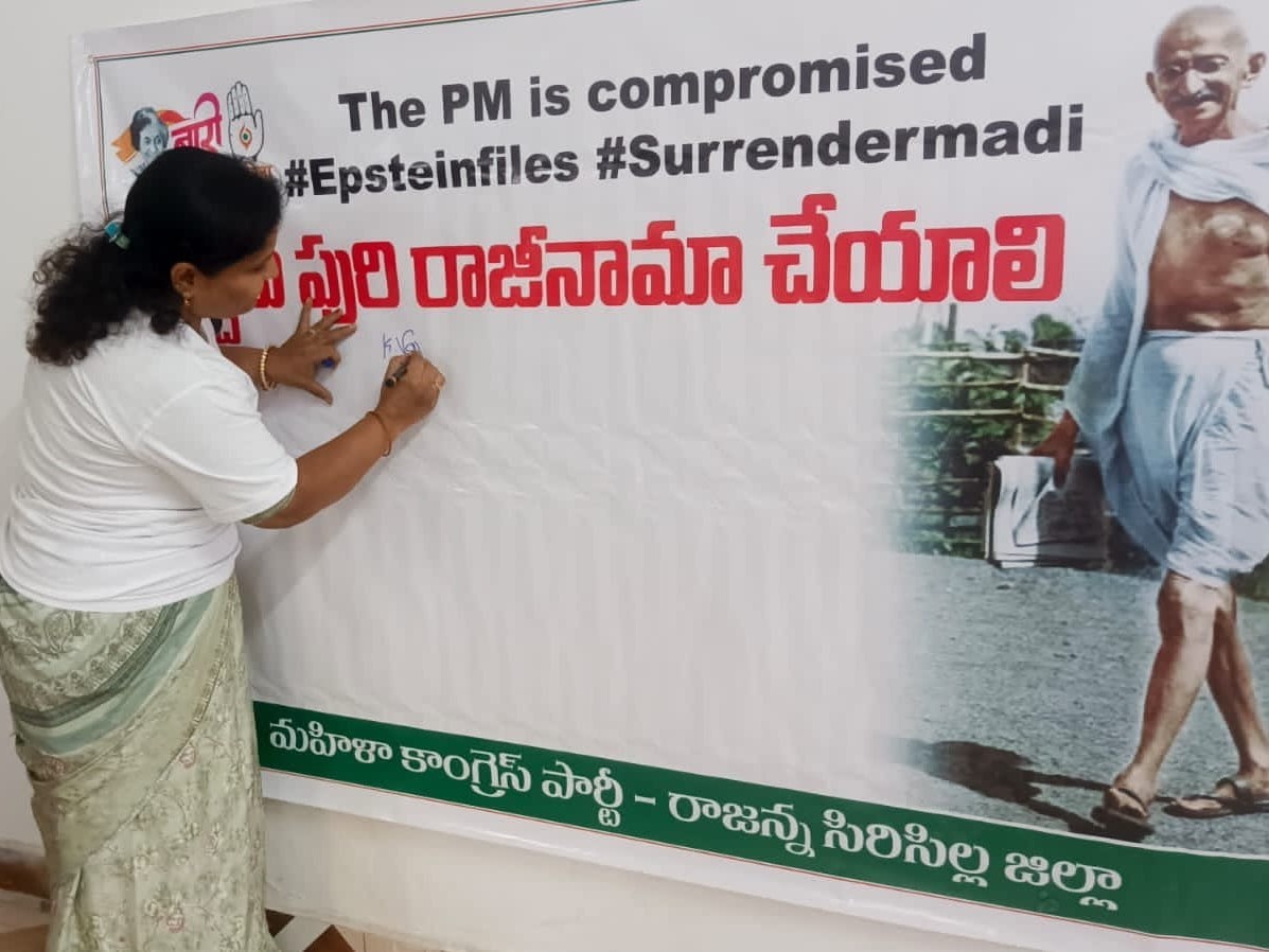 SRCL: ఎప్స్టీన్ ఫైల్స్లో పేరున్న కేంద్ర మంత్రి హర్దీప్ సింగ్ పూరి రాజీనామా చేయాలని కాంగ్రెస్ మహిళా విభాగం జిల్లా నాయకురాలు డిమాండ్ చేశారు. గురువారం సిరిసిల్ల పట్టణంలోని మహిళా కాంగ్రెస్ ఆధ్వర్యంలో సంతకాల సేకరణ కార్యక్రమాన్ని నిర్వహించారు.
