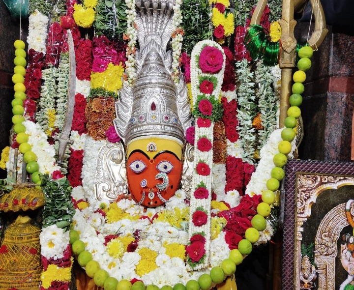 CTR: పుంగనూరు పట్టణం మున్సిపల్ బస్టాండ్ సమీపనగల శ్రీ విరుపాక్షి మారెమ్మ శుక్రవారం సందర్భంగా ప్రత్యేక అలంకారంలో భక్తులకు దక్షిణ భాగ్యం కల్పించింది. అర్చకులు అమ్మవారి విగ్రహాన్ని ఫల పంచామృతాలతో అభిషేకించారు. తర్వాత పసుపు, కుంకుమ, వెండి కిరీటంతో పాటు వివిధ పుష్పాలతో ప్రత్యేకంగా అలంకరించి దూపదీప నైవేద్యాలు సమర్పించారు. అనంతరం భక్తులు దర్శించుకున్నారు.