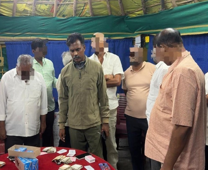 BPT: బాపట్ల రైలుపేట సమీపంలో జూదం ఆడుతున్న తొమ్మిది మందిని సోమవారం పోలీసులు అదుపులోకి తీసుకున్నారు. వారి వద్ద నుంచి రూ. 1,10,300 నగదును స్వాధీనం చేసుకున్నట్లు టౌన్ సీఐ తెలిపారు. అసాంఘిక కార్యకలాపాలకు పాల్పడితే కఠిన చర్యలు తప్పవని హెచ్చరించిన పోలీసులు, సమాచారం కోసం టోల్ ఫ్రీ నంబర్ 112కి కాల్ చేయాలని ప్రజలను కోరారు.