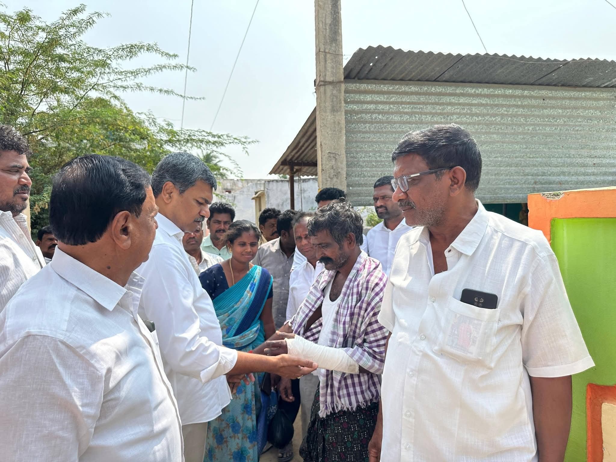 సత్యసాయి: కొత్తచెరువు మండలం నారేపల్లికి చెందిన నారాయణ ప్రమాదవశాత్తు గాయపడిన విషయం తెలుసుకున్న పుట్టపర్తి మాజీ ఎమ్మెల్యే దుద్దుకుంట శ్రీధర్ రెడ్డి ఆయన నివాసానికి వెళ్లారు. బాధితుడిని పరామర్శించి ఆరోగ్య స్థితిగతుల గురించి అడిగి తెలుసుకున్నారు. నారాయణ త్వరగా కోలుకోవాలని ఆకాంక్షిస్తూ కుటుంబ సభ్యులకు ధైర్యం చెప్పారు.