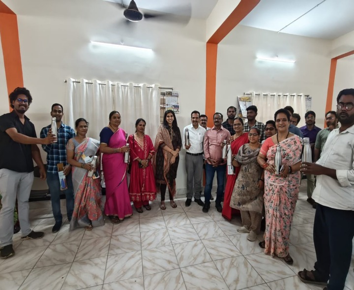 VSP: వేసవిని దృష్టిలో ఉంచుకుని సింగిల్ యూజ్ ప్లాస్టిక్ వాడకాన్ని తగ్గించేందుకు విశాఖ ఉత్తర నియోజకవర్గ ఎమ్మెల్యే పీ. విష్ణుకుమార్ రాజు ప్రత్యేక చర్యలు చేపట్టారు. ఇందులో భాగంగా GVMC జోన్-5 కార్యాలయంలో ప్లాస్టిక్ బాటిళ్లకు బదులుగా పునర్వినియోగం చేయగల నీటి బాటిళ్లను అధికారులకు మంగళవారం పంపిణీ చేశారు. ఈ కార్యక్రమంలో ఎమ్మెల్యే కుమార్తె శ్యామల దీపిక, తదితరులు పాల్గొన్నారు.