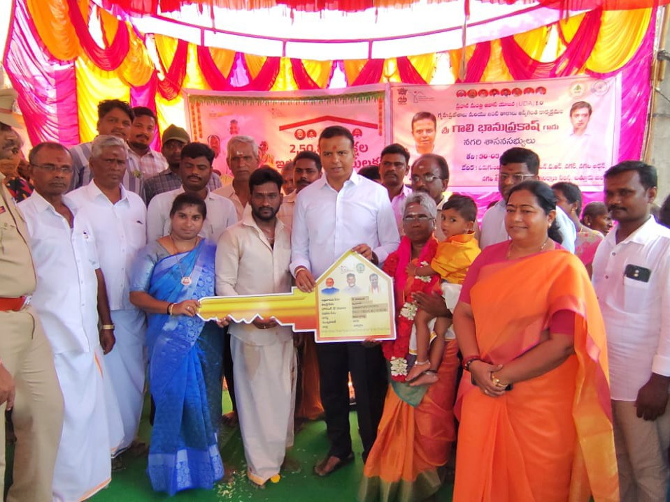 CTR: నగరి మున్సిపాలిటీ ఓరుగంటాపురంలో జరిగిన గృహప్రవేశం కార్యక్రమంలో సోమవారం నగరి ఎమ్మెల్యే గాలి భాను ప్రకాష్ పాల్గొన్నారు. లబ్ధిదారులకు ఎమ్మెల్యే భాను ప్రకాష్ తాళం అందజేశారు. అనంతరం మాట్లాడుతూ.. మొదటి విడత కింద 2025 నవంబర్లో 3,00,192 ఇళ్లను పంపిణీ చేసిన కూటమి ప్రభుత్వం, రెండో విడతగా మరో 2,50,893 ఇళ్లను పంపిణీ చేస్తుందని తెలిపారు.