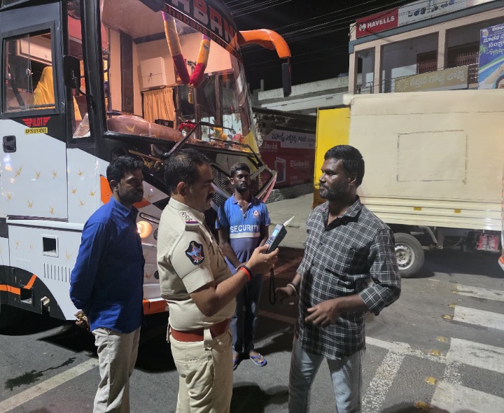 ప్రకాశం: మార్కాపురం మండలంలో గురువారం జరిగిన ఘోర రోడ్డు ప్రమాదంతో జిల్లా పోలీసులు అప్రమత్తమయ్యారు. ఈ నేపథ్యంలో శుక్రవారం కంభం పట్టణంలో సీఐ మల్లికార్జున ఆధ్వర్యంలో ప్రైవేట్ ట్రావెల్స్ బస్సులను పరిశీలించారు. బస్సుల పత్రాలు, డ్రైవర్ల లైసెన్సులు, వాహనాల ఫిట్నెస్ మరియు భద్రతా ప్రమాణాలను తనిఖీ చేశారు. నిబంధనలు పాటించని వారిపై కఠిన చర్యలు తీసుకుంటామని హెచ్చరించారు.