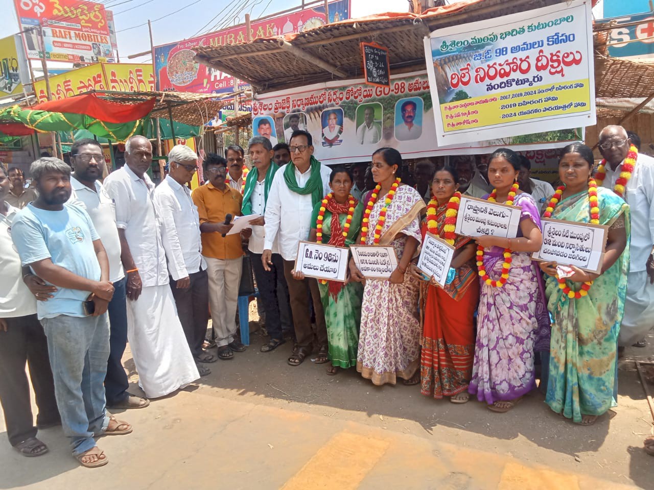 NDL: ఉమ్మడి రాష్ట్రానికి వెలుగులు ఇచ్చిన ముంపు బాధితుల న్యాయమైన హక్కులు (98GO) పరిష్కరించాలని రాయలసీమ సాగునీటి సంఘం రాష్ట్ర అధ్యక్షులు బొజ్జ దశరథ రామిరెడ్డి డిమాండ్ చేశారు. నేడు నందికొట్కూరులో 5వ రిలే నిరాహార దీక్షలు చేపట్టిన బాధితులకు సంఘీభావం తెలిపారు. జీఓ 98 ప్రకారం ఉద్యోగాలు కల్పించాలని, లేకుంటే ఉద్యమ బాట పడతమన్నారు. ఇందులో రైతు సంఘం నాయకులు ఉన్నారు.
