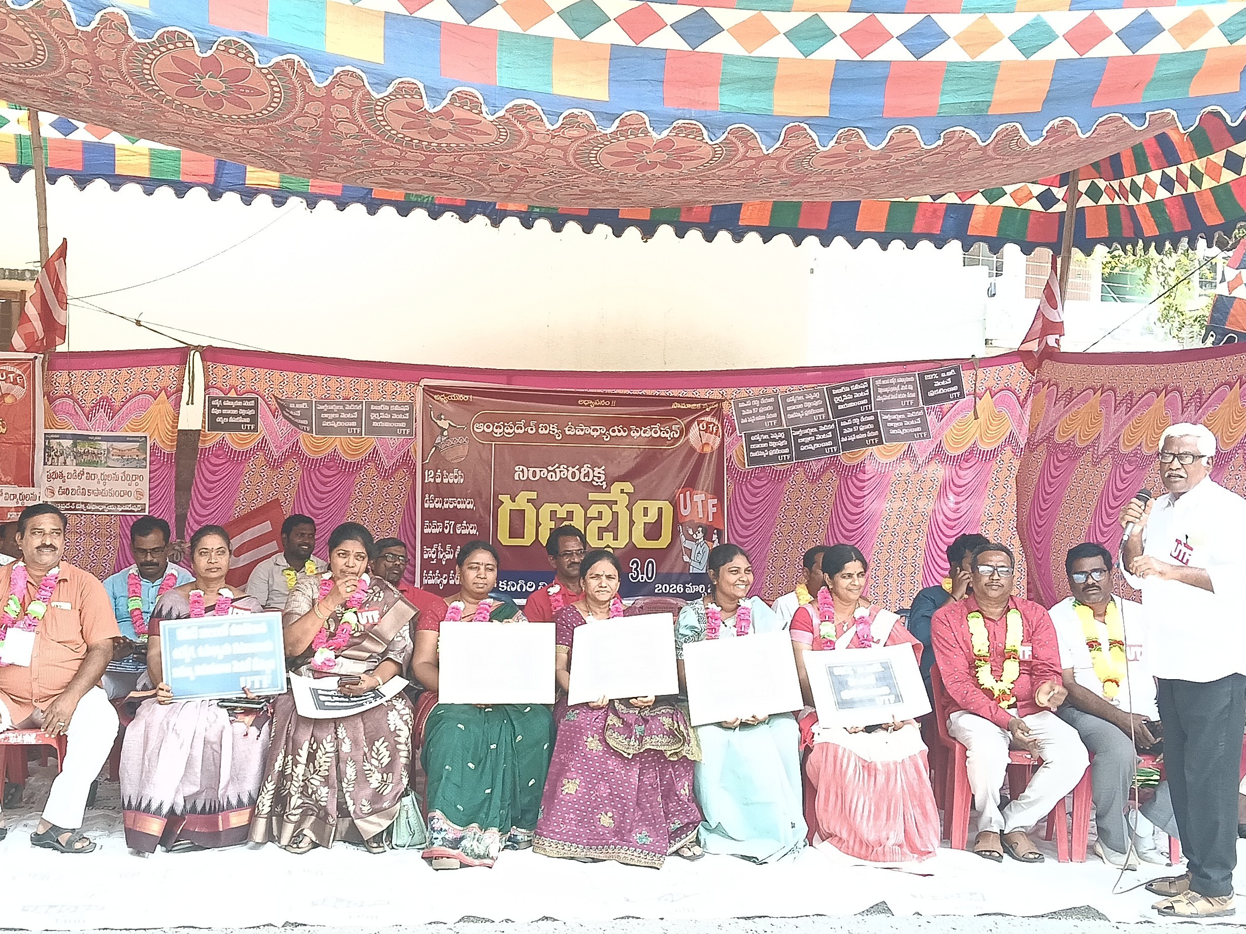 ప్రకాశం: కనిగిరి పట్టణంలోని ఆర్డీవో కార్యాలయ ప్రాంగణ సమీపంలో యుటీఎఫ్ ఆధ్వర్యంలో రణభేరి నిరాహార దీక్షలను మంగళవారం ఉపాధ్యాయులు చేపట్టారు. ఉపాధ్యాయుల దీక్షలకు పలు ప్రజాసంఘాలు మద్దతు తెలిపాయి. యుటీఎఫ్ నాయకులు మాట్లాడుతూ.. టిీీఎ, డీఎ బకాయిలు వెంటనే చెల్లించాలని, హెల్త్ స్కీమ్ సమస్యలు పరిష్కరించాలని, పీఆర్సీ కమిషన్ ఛైర్మన్ను వెంటనే నియమించాలని డిమాండ్ చేశారు.