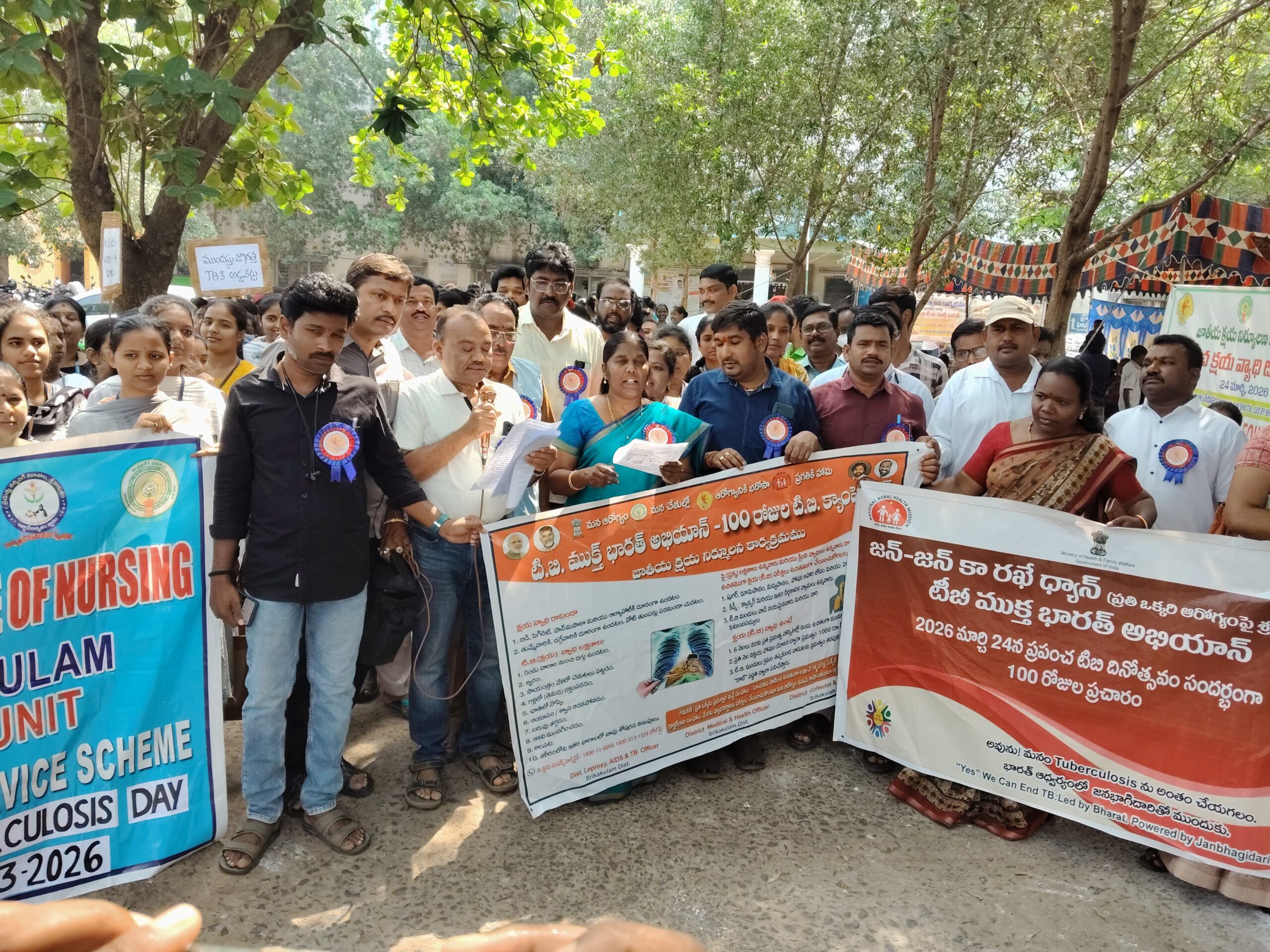 SKLM: ప్రపంచ క్షయ వ్యాధి నివారణ దినోత్సవం సందర్భంగా జిల్లా వైద్యాధికారి కార్యాలయం నుంచి స్థానిక ఏడు రోడ్ల కూడలి వరకు జిల్లా వైద్య ఆరోగ్యశాఖ అధికారి అనిత ఆధ్వర్యంలో ర్యాలీని మంగళవారం నిర్వహించారు. టీ.బీ ముక్త్ భారత్ కార్యక్రమంలో భాగంగా టీబీ నివారణకు 100 రోజుల కార్యక్రమం నిర్వహిస్తున్నామని DMHO తెలిపారు. అధికారులు, ఏఎన్ఎంలు పాల్గొన్నారు.