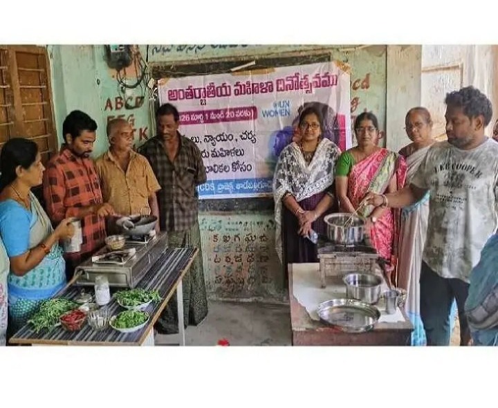 W.G: తాడేపల్లిగూడెం మండలం జగన్నాధపురం- 3 అంగన్వాడీ కేంద్రంలో పురుషులను భాగస్వామ్యం చేస్తూ ఇవాళ వంటల పోటీలు నిర్వహించారు. ఐసీడీఎస్ సూపర్వైజర్లు డీ.ఎస్తేరు రాణి, శ్రీదేవి మాట్లాడుతూ.. బాల బాలికలను సమానంగా చూడాలన్నారు. ఇరువురిని సమానంగా చదివించాలన్నారు. బాలికలకు సెల్ఫ్ డిఫెన్స్లో శిక్షణ ఇప్పించాలన్నారు. ఈ కార్యక్రమంలో తల్లిదండ్రులు, అంగన్వాడీ సిబ్బంది పాల్గొన్నారు.