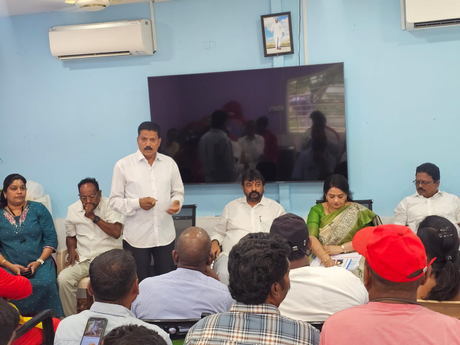 విశాఖలోని 13వ వార్డు వైసీపీ కార్యాలయంలో బూత్ లెవల్ ఏజెంట్లు, ముఖ్య నాయకులతో అత్యవసర సమావేశం నిర్వహించారు. ఈ కార్యక్రమానికి తూర్పు నియోజకవర్గ సమన్వయకర్త మొల్లి అప్పారావు, వైసీపీ మహిళా విభాగం అధ్యక్షురాలు పేడాడ రమణికుమారి హాజరయ్యారు. వార్డు కమిటీల నిర్మాణం త్వరితగతిన పూర్తి చేయాలన్నారు.