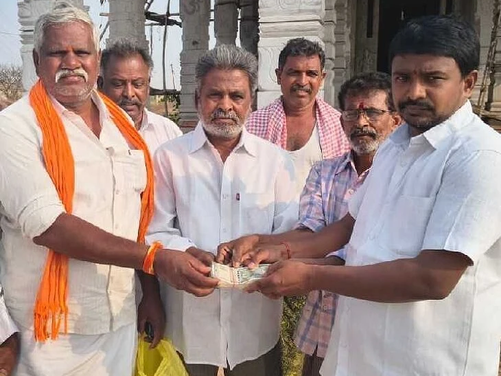 KRNL: ఎమ్మిగనూరు మండలం సిరాలదొడ్డిలో వెలసిన శ్రీ ఆంజనేయస్వామి ఆలయంలో 25 అడుగుల ధ్వజస్తంభ స్థాపన కోసం రూ.2 లక్షల నగదును అడ్డాల రామన్న మనవడు బుదరపు నందకిశోర్ ఆలయ కమిటీ సభ్యులకు అందజేశారు. గ్రామస్థులు, ఆలయ కమిటీ సభ్యులు నందకిశోర్కు కృతజ్ఞతలు తెలిపారు. ఆలయ అభివృద్ధికి ఈ సహాయం ఎంతో ఉపయోగపడుతుందని హర్షం వ్యక్తం చేశారు.