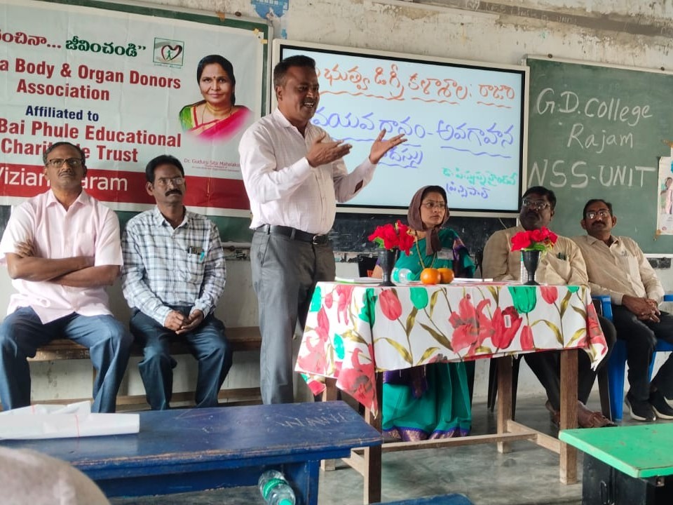 VZM: మరణించిన తర్వాత కూడా జీవించాలంటే అవయవ దానం చేయాలని అఖిలభారత శరీర అవయవ దాతల సంఘం ఏపీ రాష్ట్ర ప్రధాన కార్యదర్శి షిణగం శివాజీ పిలుపునిచ్చారు. రాజాం, పొందూరు, చీపురుపల్లి కళాశాలల్లో మంగళవారం నిర్వహించిన అవగాహన కార్యక్రమాల్లో ఆయన మాట్లాడుతూ.. అవయవ దానం ద్వారా మరికొందరికి ప్రాణాలు నిలుపవచ్చని తెలిపారు. ఈ కార్యక్రమంలో పలువురు విద్యావేత్తలు పాల్గొన్నారు.