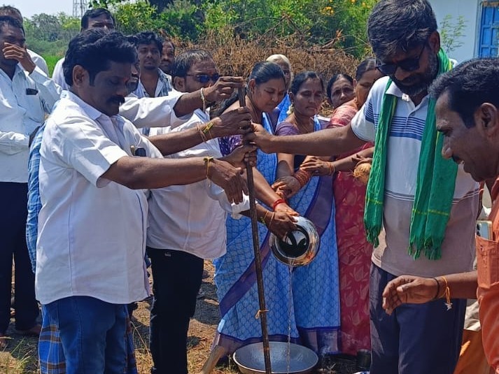 KRNL: మంత్రాలయం (M) సుంకేశ్వరి గ్రామంలో ఇవాళ “రైతన్న మీకోసం వారోత్సవాల్లో” కార్యక్రమం నిర్వహించారు. ఈ కార్యక్రమంలో TDP ఇన్ఛార్జ్ ఎన్. రాఘవేంద్ర రెడ్డి, యువ నాయకుడు ఎన్. రాజారెడ్డి పాల్గొన్నారు. ఇవాళ వారు రైతులతో సమావేశమై పంచసూత్రాలు, అన్నదాత సుఖీభవ, పీఎం కిసాన్ వంటి పథకాలపై అవగాహన కల్పించారు. అనంతరం రూ.10 లక్షలతో నిర్మించనున్న సీసీ రోడ్డు, డ్రైనేజ్ పనులకు భూమిపూజ చేశారు.