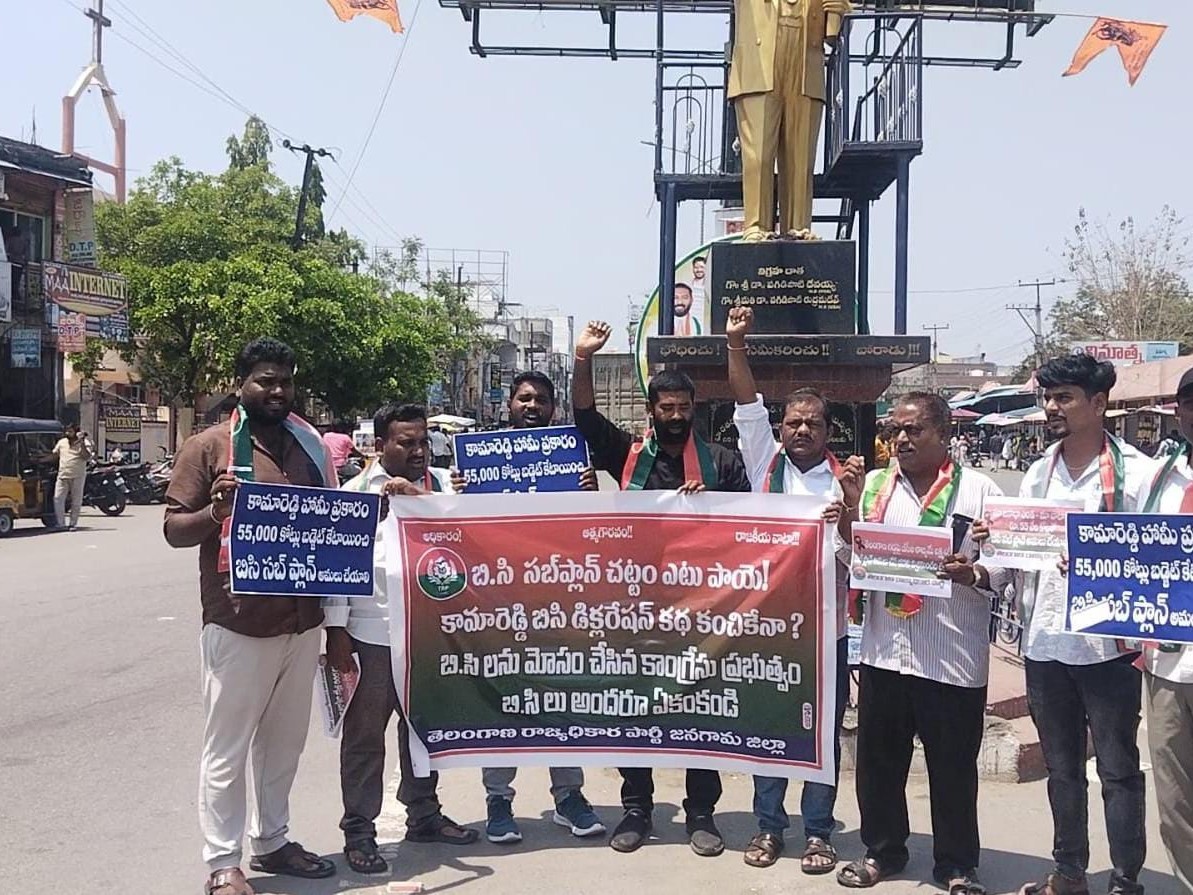 జనగామ జిల్లా కేంద్రంలో తెలంగాణ రాజ్యాధికార పార్టీ నేతలు నిరసన చేపట్టారు. TRP జిల్లా వర్కింగ్ ప్రెసిడెంట్ నరేష్, జిల్లా ప్రధాన కార్యదర్శి సతీష్ ముదిరాజ్ మాట్లాడుతూ.. రాష్ట్ర జనాభాలో 60 శాతానికి పైగా ఉన్న బీసీలకు బడ్జెట్లో నామమాత్రపు కేటాయింపులు కూడా చేయకపోవడం దురదృష్టకరమని, బడ్జెట్లో బీసీలకు మొండిచేయి చూపించారని విమర్శించారు.