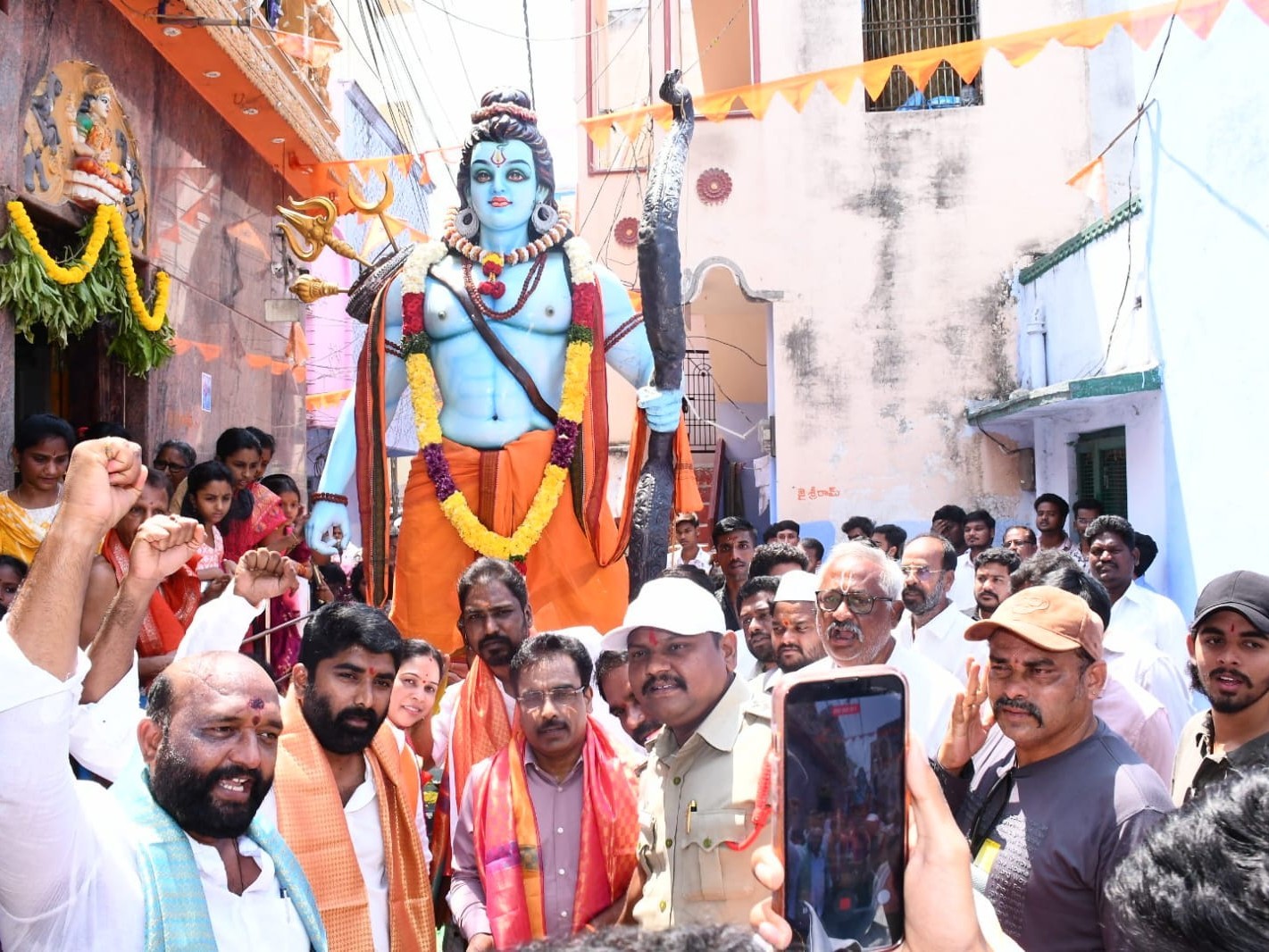 KRNL: ధర్మానికి శ్రీరాముడు ఆదర్శంగా నిలిచి, సత్యం, న్యాయం, నీతి మార్గాలను సమాజానికి చూపించిన ఆయన చరితం నేటి సమాజానికీ మార్గదర్శకంగా నిలుస్తోందని నగరపాలక సంస్థ కమిషనర్ పీ. విశ్వనాథ్ తెలిపారు. శుక్రవారం శ్రీరామనవమి సందర్భంగా నగరంలోని పాతబస్తీ తెలుగు వీధిలో ఉన్న ఆంజనేయ స్వామి ఆలయం వద్ద నిర్వహించిన శోభాయాత్రను కమిషనర్ ప్రారంభించారు.