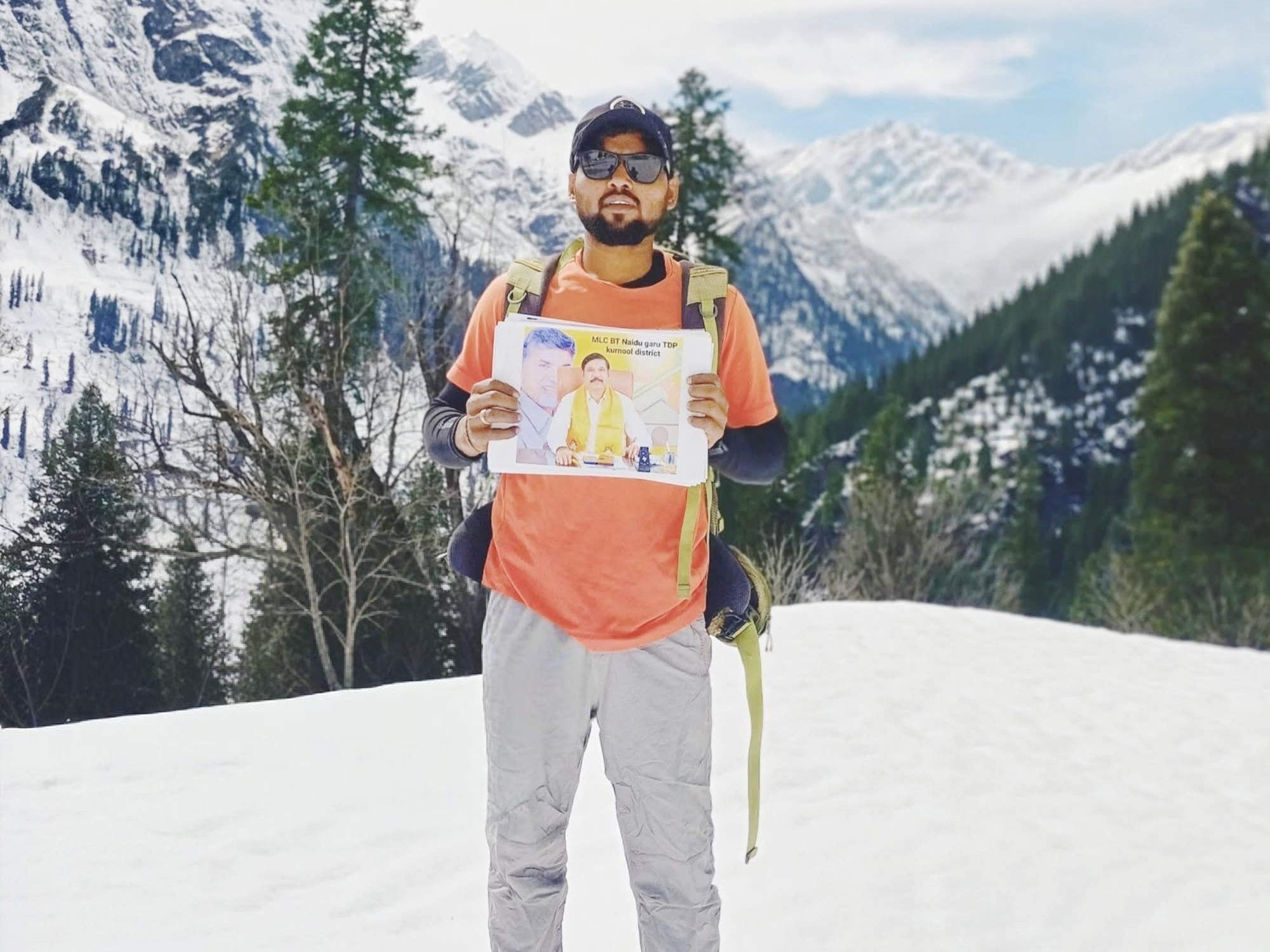 KRNL: గోనెగండ్లకు చెందిన యువకుడు పోలకల్ రాజ్ కుమార్ తన అభిమానానికి వినూత్న రూపం ఇచ్చాడు. హిమాచల్ ప్రదేశ్లోని మంచు పర్వత శిఖరంపై గడ్డకట్టే చలిని లెక్కచేయకుండా ఎమ్మెల్సీ బీటీ నాయుడు ఫోటోను ప్రదర్శించాడు. మైనస్ ఉష్ణోగ్రతల్లో చూపిన ఈ సాహసం ప్రస్తుతం సోషల్ మీడియాలో వైరల్గా మారింది.