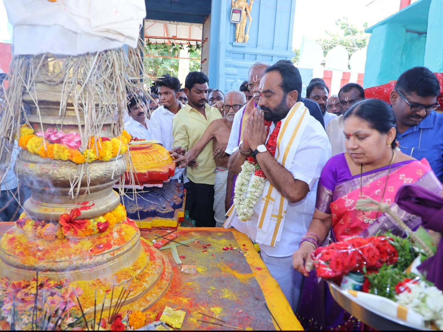 PLD: పల్నాడు ప్రజల ఆరాధ్య దైవమైన శ్రీ లక్ష్మీ చెన్నకేశవ స్వామి వారి వార్షిక బ్రహ్మోత్సవాలు మాచర్లలో వైభవంగా కొనసాగుతున్నాయి. ఈ సందర్భంగా మాచర్ల ఎమ్మెల్యే జూలకంటి బ్రహ్మానందరెడ్డి తన సతీమణి శోభారాణితో కలిసి ఆలయాన్ని సందర్శించారు. స్వామివారికి ప్రత్యేక పూజలు నిర్వహించి, మొక్కులు తీర్చుకున్నారు. అనంతరం భక్తులతో కలిసి ఉత్సవాల్లో పాల్గొన్నారు.