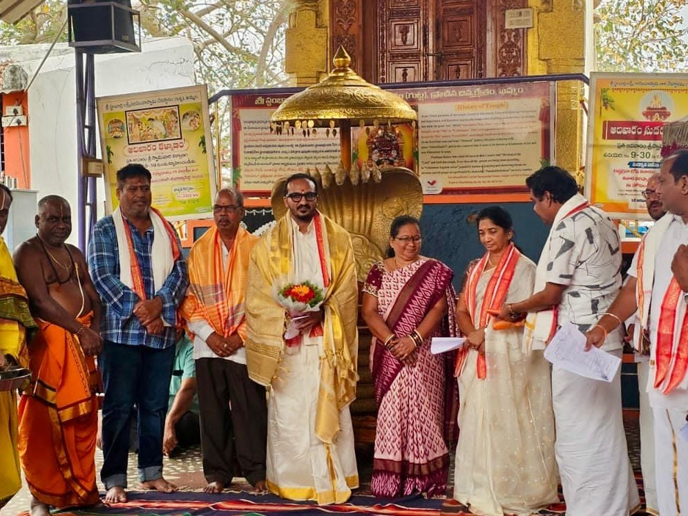 KMM: నగరంలోని ప్రసిద్ధ పుణ్యక్షేత్రమైన స్తంభాద్రి లక్ష్మీనరసింహస్వామి దేవస్థానం ఛైర్మన్గా డాక్టర్ కూరపాటి ప్రదీప్ కుమార్ బాధ్యతలు స్వీకరించారు. జిల్లా ఎండోమెంట్ అధికారి సమత, ఈవో జగన్మోహన్ రావు సమక్షంలో ప్రమాణ స్వీకార మహోత్సవం జరిగింది. వేద పండితుల మంత్రోచ్ఛరణల మధ్య ప్రత్యేక పూజలు, హోమాలు నిర్వహించి ఛైర్మన్గా అధికారికంగా బాధ్యతలు చేపట్టారు.