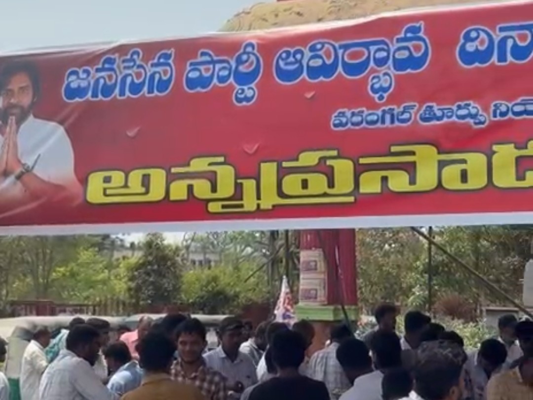 WGL: ఇవాళ జనసేన పార్టీ ఆవిర్భావ దినోత్సవాన్ని పురస్కరించుకుని జనసేన కార్యకర్తలు వేడుకలు నిర్వహించారు. నగరంలోని భద్రకాళి ఆలయం ఆర్చి వద్ద అన్నదాన కార్యక్రమాన్ని నిర్వహించారు. ముందుగా పవన్ కళ్యాణ్ అభిమానులు, జనసేన నాయకులు భద్రకాళి ఆలయంలో ప్రత్యేక పూజలు చేశారు. రాజేంద్రప్రసాద్, గడ్డం రాకేష్, అభిలాష్, అనుదీప్ తదితరులున్నారు.