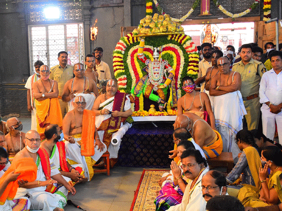 BHNG: యాదగిరిగుట్ట శ్రీ లక్ష్మినృసింహుడి సన్నిధిలో శుక్రవారం ఉదయం లక్ష్మి అమ్మవారికి ప్రత్యేక పూజలు జరిపారు. స్వయంభూ మూర్తులను నిజాభిషేకం అనంతరం పట్టువస్త్రాలు, బంగారు ఆభరణాలతో దివ్యమనోహరంగా అలంకరించారు. స్వామి, అమ్మవార్లకు లక్ష నామ స్తోత్రాలతో కుంకుమార్చనను ఘనంగా నిర్వహించారు. ఈ కార్యక్రమంలో భక్తులు పాల్గొని మొక్కులు చెల్లించుకున్నారు.