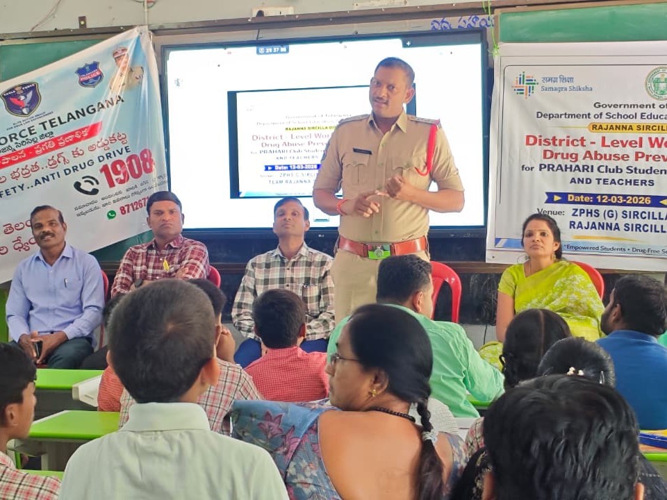 SRCL: డ్రగ్స్ రహిత సమాజ నిర్మాణం కోసం ప్రతి ఒక్కరూ పాటుపడాలని, రాజన్న సిరిసిల్ల జిల్లా ఎస్పీ మహేష్ బిగితే అన్నారు. సిరిసిల్ల పట్టణంలోని గీత నగర్ ప్రభుత్వ పాఠశాలలో టాస్క్ ఫోర్స్ సీఐ నటేష్ ఆధ్వర్యంలో డ్రగ్స్ వల్ల కలిగే దుష్పరిణామాలపై విద్యార్థులకు అవగాహన కల్పించారు. విద్యార్థులు మాదక ద్రవ్యాల బారిన పడకుండా ఉండాలన్నారు విద్యార్థులు పాల్గొన్నారు.