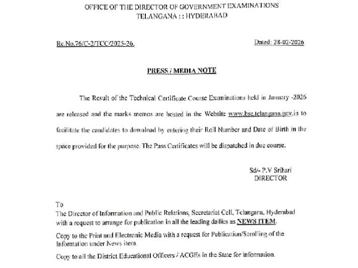 MHBD: జిల్లాలో జనవరిలో జరిగిన టెక్నికల్ కోర్స్ సర్టిఫికేట్ (TCC) ఫలితాలు విడుదలయ్యాయని జిల్లా విద్యాశాఖ అధికారి రాజేశ్వర్ తెలిపారు. https://www.bse.telangana.gov.in ద్వారా అభ్యర్థులకు సంబంధించిన పుట్టిన తేదీ, హాల్ టికెట్ నెంబర్ ద్వారా ఫలితాలు తెలుసుకోవచ్చన్నారు. ఫలితాల సందేహాలకు 9849761012ను సంప్రదించాలన్నారు.