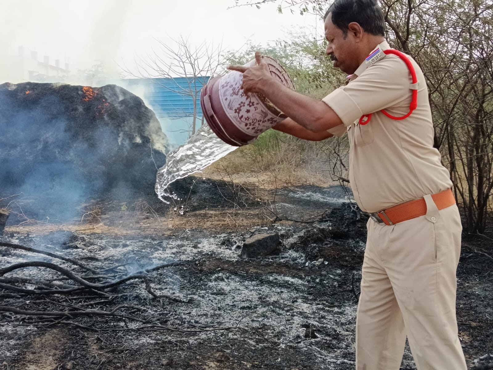 KRNL: పెద్దకడబూరులో ఆదివారం ప్రమాదవశాత్తు గడ్డివాము దగ్ధమై సుమారు రూ. 50,000 మేర నష్టం సంభవించింది. గ్రామానికి చెందిన కోటేకల్లు రాజన్న రైతు ZPHS పాఠశాల సమీపంలో తన వృషభాల కోసం నిల్వ ఉంచిన గడ్డికి అకస్మాత్తుగా మంటలు అంటుకుని పూర్తిగా కాలిపోయింది. ఏఎస్ఐ శివరాములు పోలీసు సిబ్బందితో ఇతర గడ్డివాములకు మంటలు వ్యాపించకుండా మంటలను ఆర్పేశారు.