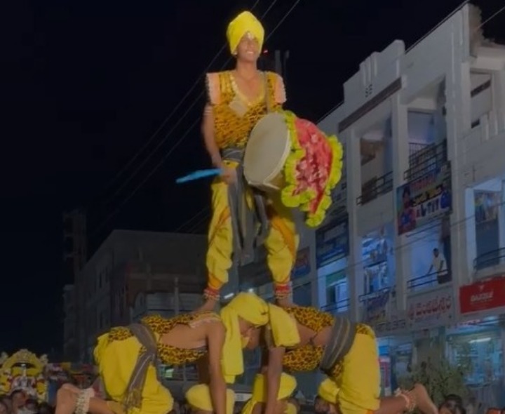 వికారాబాద్ జిల్లా కొడంగల్ పట్టణంలో ఆధ్యాత్మిక శోభ సంతరించుకుంది. స్థానిక శ్రీ మహాలక్ష్మి వేంకటేశ్వర స్వామి దేవాలయ పునర్నిర్మాణ పనుల్లో భాగంగా నిర్వహించిన బాలాలయ ప్రతిష్ఠాపన మహోత్సవం అత్యంత వైభవంగా జరిగింది. ఈ శోభాయాత్రలో ఒగ్గుడోలు కళాకారుల విన్యాసాలు ప్రత్యేక ఆకర్షణగా నిలిచాయి. వారి ప్రదర్శనలు భక్తులను ఎంతగానో మంత్రముగ్ధులను చేశాయి.