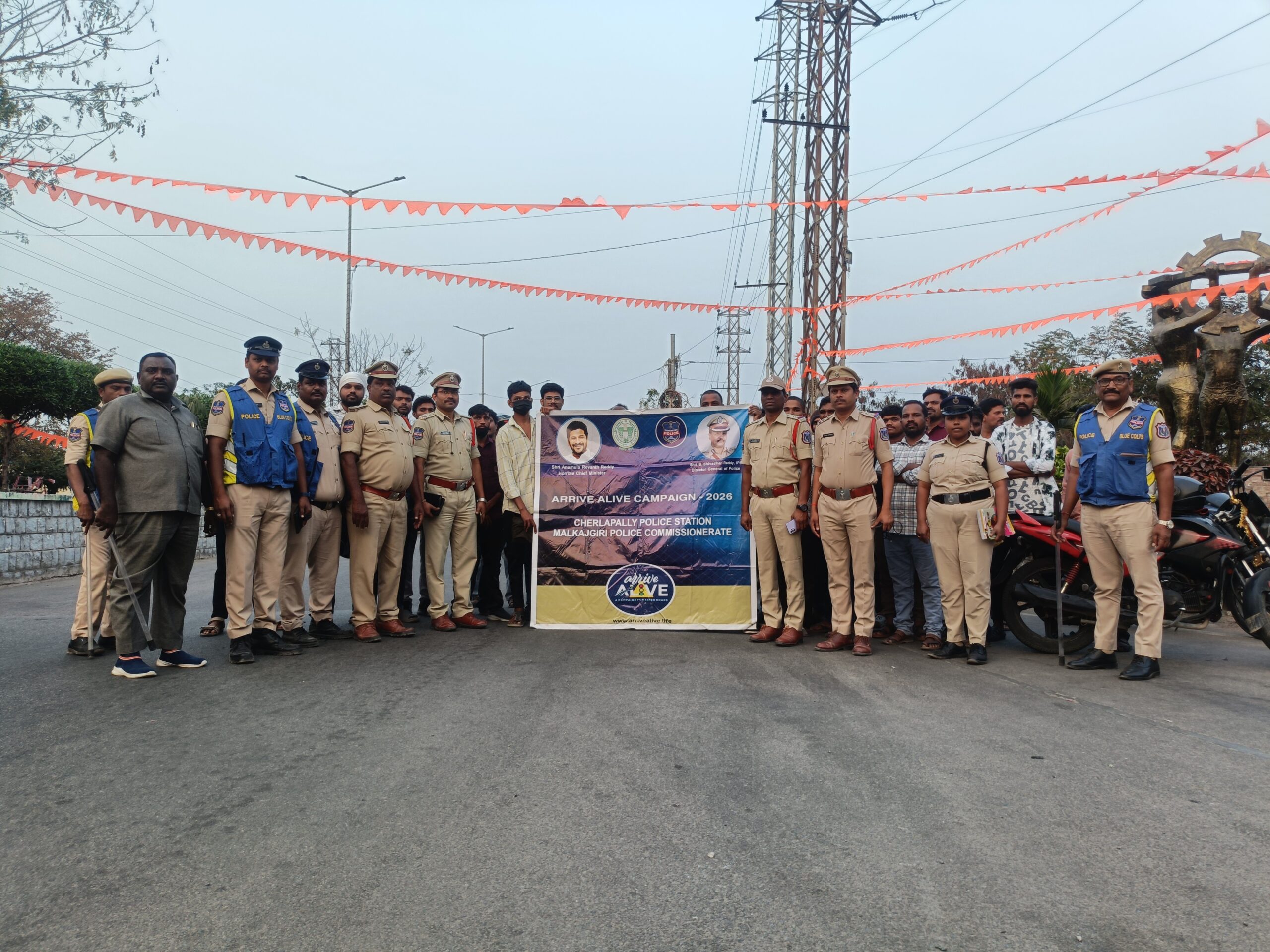 మేడ్చల్ జిల్లా చర్లపల్లి పోలీస్ స్టేషన్ పరిధిలో రోడ్ ప్రమాదాల నివారణకు SHO సుధాకర్ ఆధ్వర్యంలో పోలీసు సిబ్బంది, స్థానికులు అవగాహన కార్యక్రమం నిర్వహించారు. ప్రమాదాల సమయం, కారణాలు, నివారణ చర్యలపై వారు చర్చించారు. ప్రజలు ట్రాఫిక్ నియమాలు పాటించాలని విజ్ఞప్తి చేశారు.