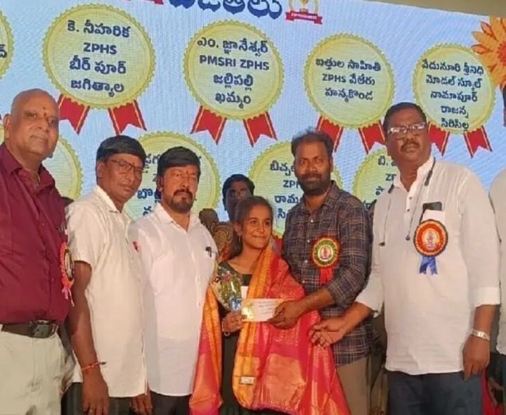 JGL: రాష్ట్ర భాషోపాధ్యాయ సంస్థ నిర్వహించిన రాష్ట్ర స్థాయి తెలుగు వ్యాస రచన పోటీల్లో బుగ్గారం ఉన్నత పాఠశాలకు చెందిన విద్యార్థిని కెతి శ్రావ్య విజేతగా నిలిచింది. హన్మకొండలో జరిగిన కార్యక్రమంలో ప్రముఖ కవి మిట్టపల్లి సురేందర్, సంస్థ అధ్యక్షుడు చక్రవర్తుల శ్రీనివాస్ చేతుల మీదుగా ఆమెకు నగదు బహుమతి, మెమెంటో, ప్రశంసాపత్రం అందజేశారు.