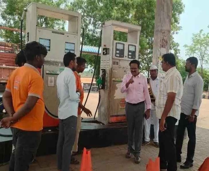 KDP: ఒంటిమిట్టలోని పెట్రోలు బంకును ఇవాళ RDO మురళి తనిఖీ చేసి స్టాకు రిజిస్టర్లను పరిశీలించారు. ఆయన మాట్లాడుతూ.. పెట్రోల్ బంకుల్లో వినియోగదారులకు డీజిల్, పెట్రోలు కొరత లేకుండా చూడాలన్నారు. వాటర్ బాటిల్, క్యాన్లలో పెట్రోలు,డీజిల్ పట్టకూడదని నిర్వాహకులను ఆదేశించారు. ఇంధనం బ్లాక్ మార్కెట్కు తరలిస్తే చర్యలు తప్పవన్నారు.