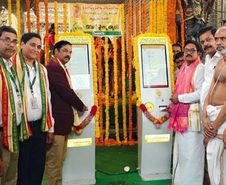 ELR: ద్వారకా తిరుమలలోని వేంకటేశ్వర స్వామి దేవస్థానంలో భక్తుల సౌకర్యార్థం కియోస్క్ మెషిన్లు ఆలయ అధికారులు ఇవాళ ప్రారంభించారు. రాష్ట్ర ప్రభుత్వం-కరూర్ వైశ్యా బ్యాంక్ సహకారంతో ఏర్పాటైన ఈ సదుపాయాన్ని ఆలయ ఈవో వై.భద్రాజి, బ్యాంక్ ప్రతినిధులతో కలిసి ప్రారంభించారు. యూపీఐ, కార్డుల ద్వారా దర్శనం, ప్రసాదం టికెట్లు సులభంగా పొందవచ్చన్నారు.