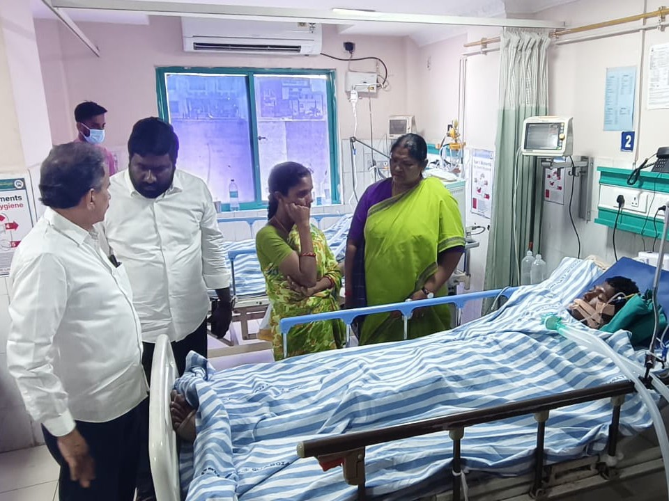 MLG: మేడారం సమ్మక్క పూజారి రాణా రమేష్ కుమారుడు ప్రమాదవశాత్తు గాయపడి హన్మకొండలోని గార్డియన్ హాస్పిటల్లో చికిత్స పొందుతున్నారు. ఈ విషయం తెలుసుకున్న మంత్రి సీతక్క బుధవారం ఆసుపత్రికి వెళ్లి బాధితుడుని పరామర్శించారు. అనంతరం మెరుగైన చికిత్స అందించాలని వైద్యులను ఆదేశించారు. మంత్రి వెంట DCC అధ్యక్షుడు అశోక్ తదితరులు ఉన్నారు.