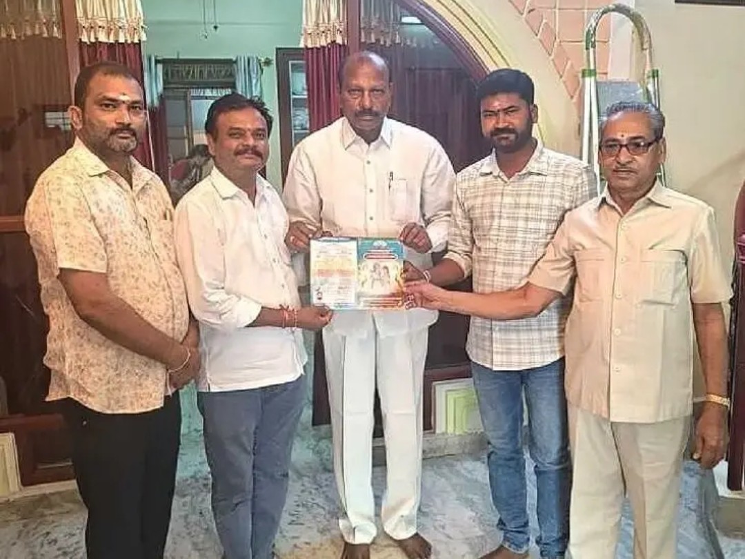 JGL: జగిత్యాల పట్టణంలోని శ్రీ భక్త మార్కండేయ దేవాలయంలో జరగనున్న శ్రీరామనవమి వేడుకల సందర్భంగా నిర్వహించే సీతారాముల కళ్యాణ మహోత్సవం ఆహ్వాన పత్రికను జగిత్యాల డీసీసీ అధ్యక్షుడు గాజంగి నందయ్య ఆవిష్కరించారు. ఈ కార్యక్రమానికి రావాలని పద్మశాలి సేవా సంఘం కార్యవర్గ సభ్యులు ఆహ్వానించారు. భక్తులు పెద్ద సంఖ్యలో పాల్గొని వేడుకలను విజయవంతం చేయాలని నందయ్య కోరారు.