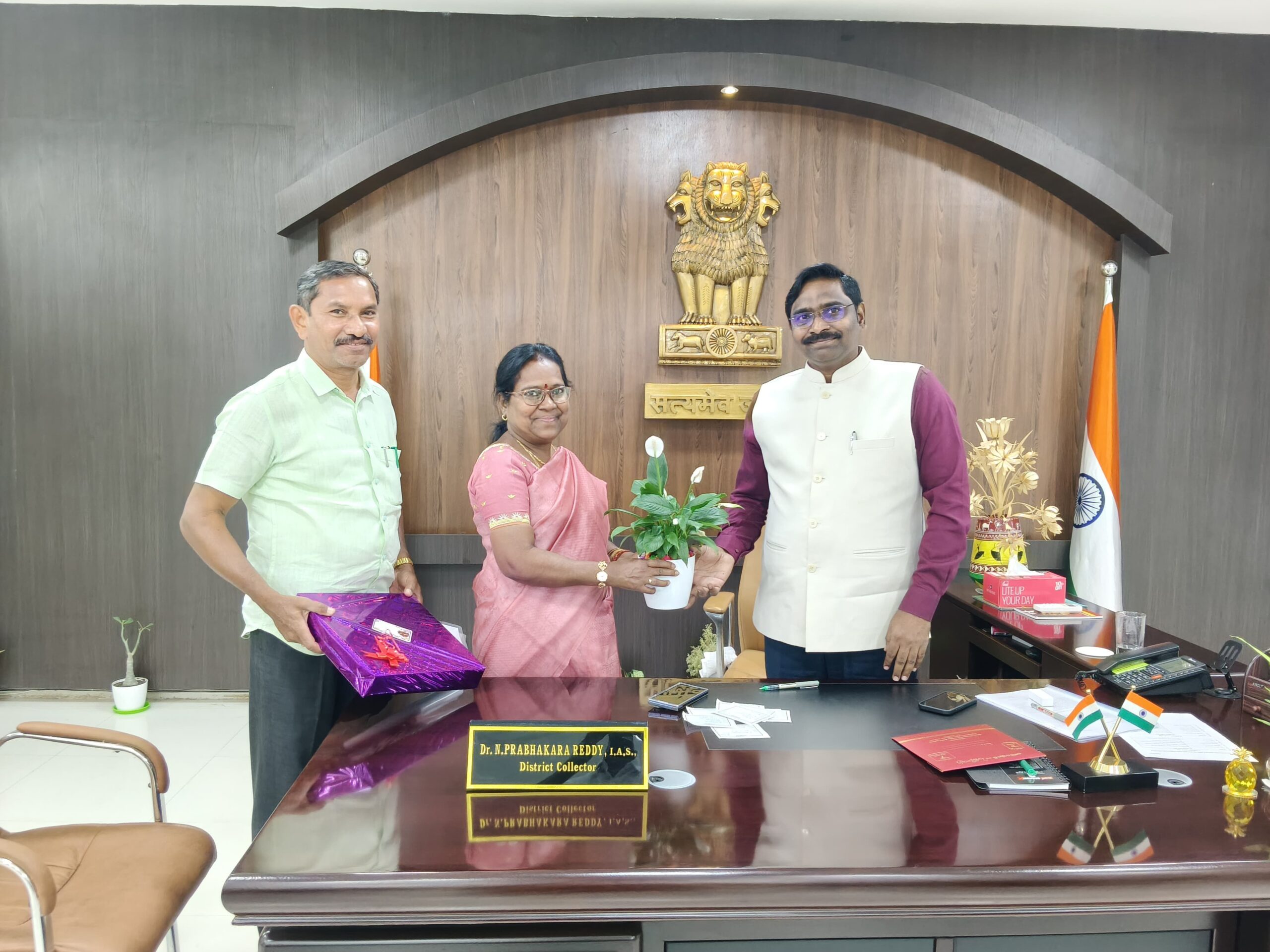 PPM: పాలకొండ పంచాయతీ రాజ్ విభాగం ఎగ్జిక్యూటివ్ ఇంజనీర్గా నూతనంగా బాధ్యతలు స్వీకరించిన ఎస్.రాధారాణి గురువారం కలెక్టర్ డా, ప్రభాకర రెడ్డిని మర్యాదపూర్వకంగా కలిశారు. కలెక్టర్ కార్యాలయంలోని ఆయన ఛాంబర్లో కలెక్టర్ను కలిసి పుష్పగుచ్చం అందజేశారు. ఈ సందర్బంగా జిల్లాలో పంచాయతీ రాజ్ శాఖ ద్వారా జరుగుతున్న అభివృద్ధి పనులు, పెండింగ్ పనులపై దృష్టి సారించాలన్నారు.