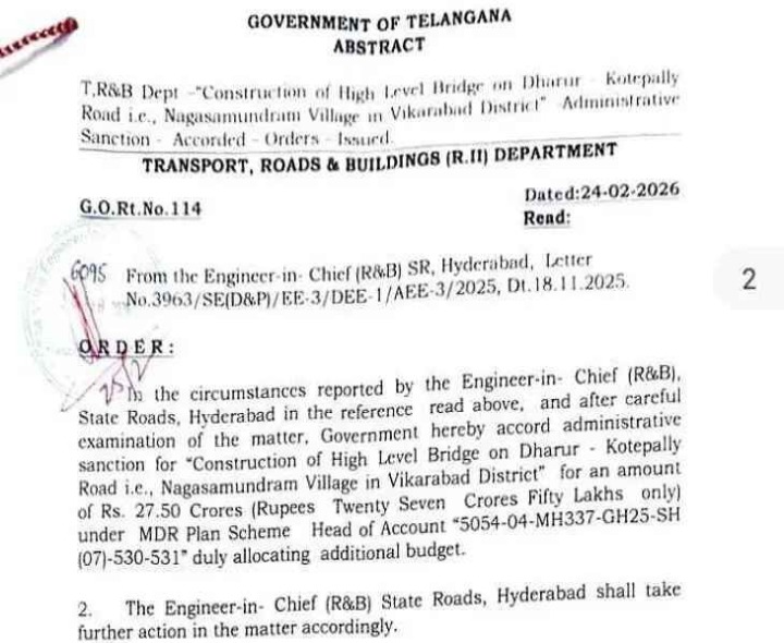 VKB: కోట్పల్లి బ్రిడ్జి నిర్మాణానికి రూ. 27.5 కోట్ల నిధులు మంజూరైనట్లు మండల మాజీ వైస్ ఎంపీపీ వర్ధ మల్లికార్జున్ వెల్లడించారు. గతేడాది కురిసిన భారీ వర్షాలకు ఈ పాత బ్రిడ్జి కొట్టుకుపోవడంతో అప్పటి నుంచి వాహనదారులు, స్థానిక ప్రజలు రాకపోకల కోసం తీవ్ర ఇబ్బందులు ఎదుర్కొంటున్నారు. గడ్డం ప్రసాద్ కుమార్ నిధులు మంజూరు చేయించడంతో ప్రజలు హర్షం వ్యక్తం చేస్తున్నారు.