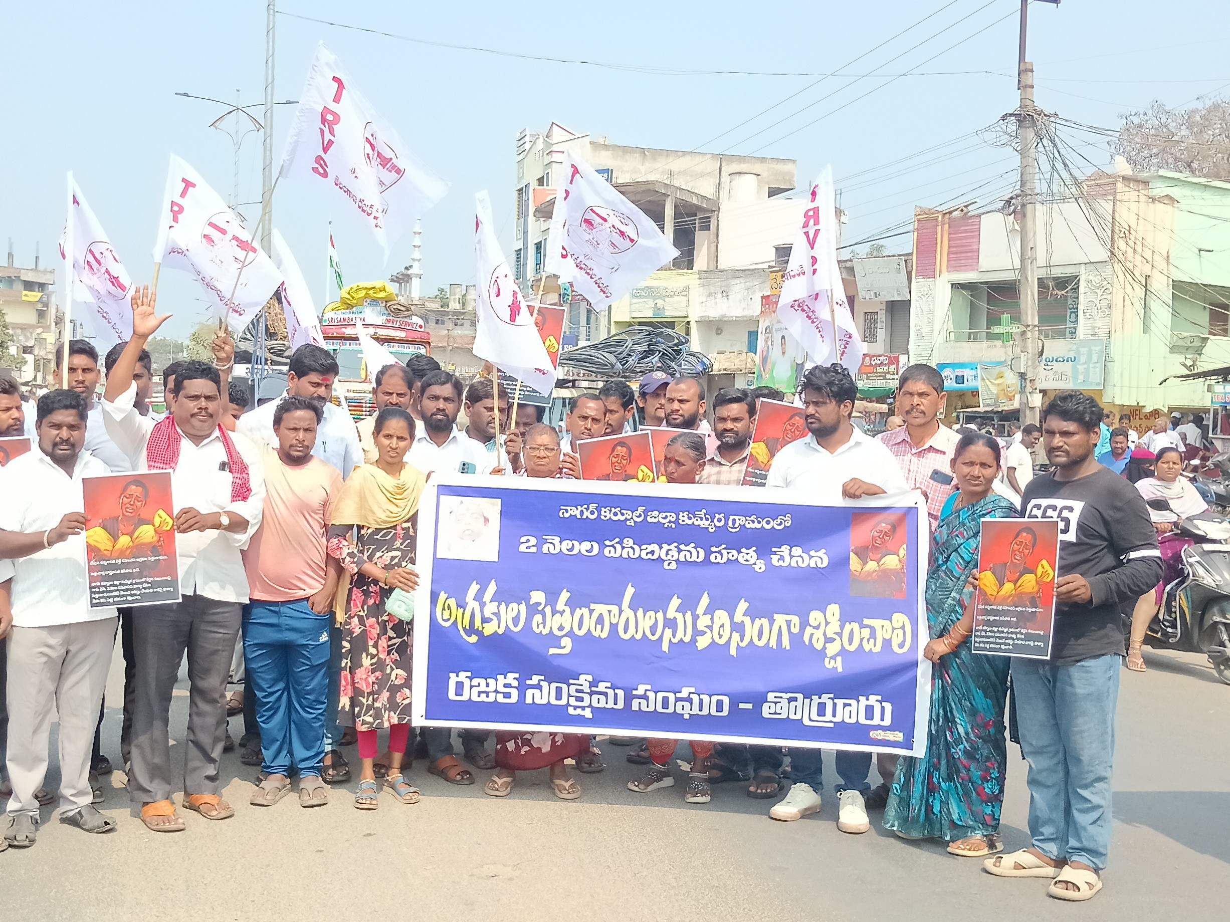 MHBD: నాగర్ కర్నూల్ జిల్లా కుమ్మెర మల్లన్న జాతరలో రజక కుటుంబంపై జరిగిన దాడిని ఖండిస్తూ… తొర్రూరు బీసీ సంఘాల ఆధ్వర్యంలో స్థానిక విశ్రాంతి భవనం నుంచి బస్టాండ్ చౌరస్తా వరకు భారీ ర్యాలీ నిర్వహించారు. బాధిత కుటుంబానికి ప్రభుత్వం తక్షణమే న్యాయం చేయాలని, రజక కుటుంబంపై దాడికి పాల్పడి, చిన్నారి మృతికి కారకులైన నిందితులను శిక్షించాలని డిమాండ్ చేశారు.