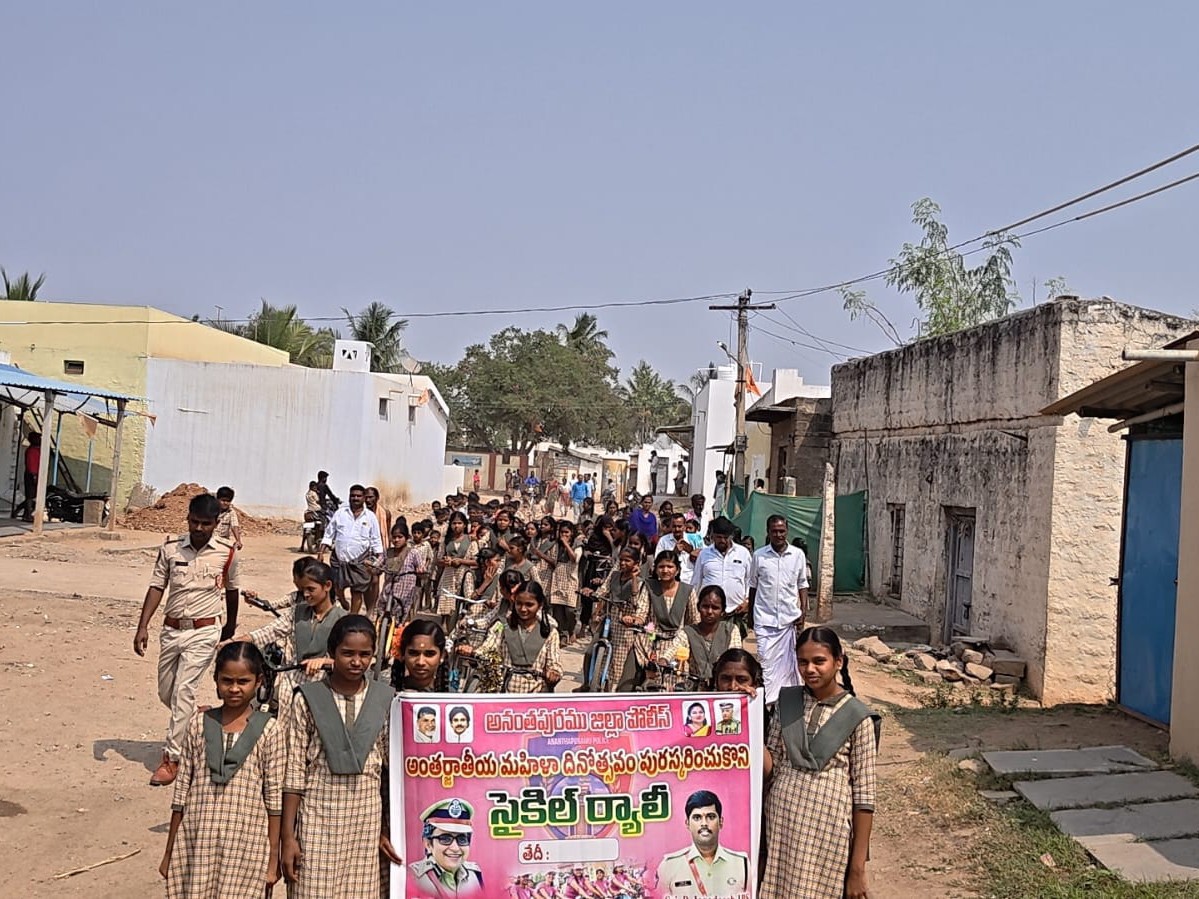 ATP: అంతర్జాతీయ మహిళా దినోత్సవం పురస్కరించుకుని అనంతపురం జిల్లా వ్యాప్తంగా పోలీస్ స్టేషన్ల పరిధిలో సైకిల్ ర్యాలీలు నిర్వహించారు. మహిళల భద్రత, సాధికారతపై అవగాహన కల్పించడమే లక్ష్యంగా శక్తి టీమ్స్, మహిళా పోలీసులు, యువ సిబ్బంది ఉత్సాహంగా పాల్గొన్నారు. ప్రధాన రహదారులు, కూడళ్ల మీదుగా సాగిన ఈ ర్యాలీల్లో మహిళా హెల్ప్లైన్ సేవలపై అవగాహన కల్పించారు.