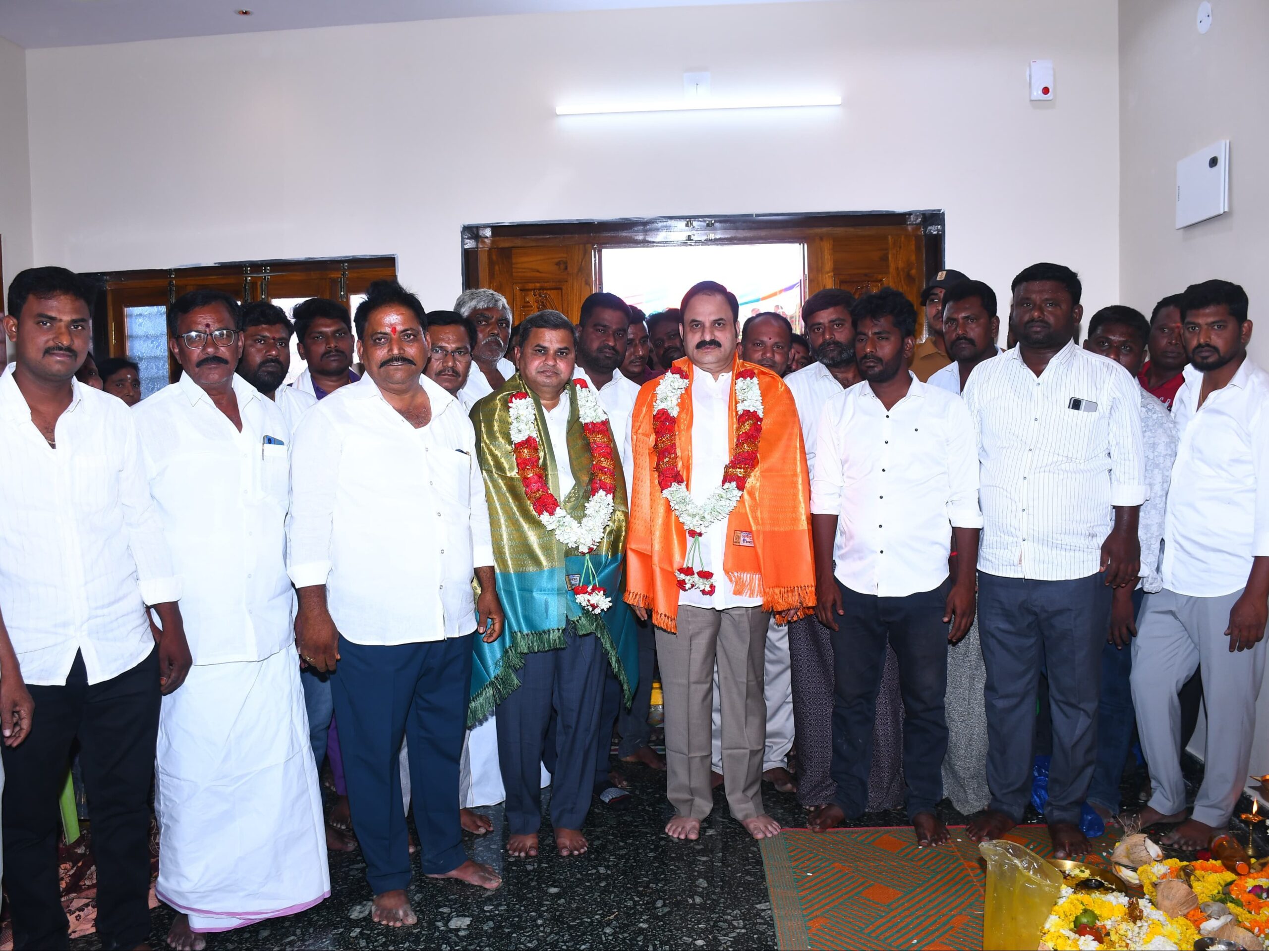 NDL: అవుకు మండలం రామాపురం గ్రామంలో ఇవాళ బనగానపల్లె మాజీ ఎమ్మెల్యే కాటసాని రామిరెడ్డి, జిల్లా పరిషత్ ఛైర్మన్ ఎర్రబోతుల పాపిరెడ్డి కలిసి పర్యటించారు. గ్రామ వైసీపీ నాయకుడు పేరం వెంకటసుబ్బారెడ్డి ఆహ్వానం మేరకు మాజీ ఎమ్మెల్యే కాటసాని రామిరెడ్డి గృహప్రవేశ కార్యక్రమంలో పాల్గొన్నాడు. అనంతరం వారు మాజీ ఎమ్మెల్యే, జడ్పీ ఛైర్మన్ను ఘనంగా సన్మానించారు.