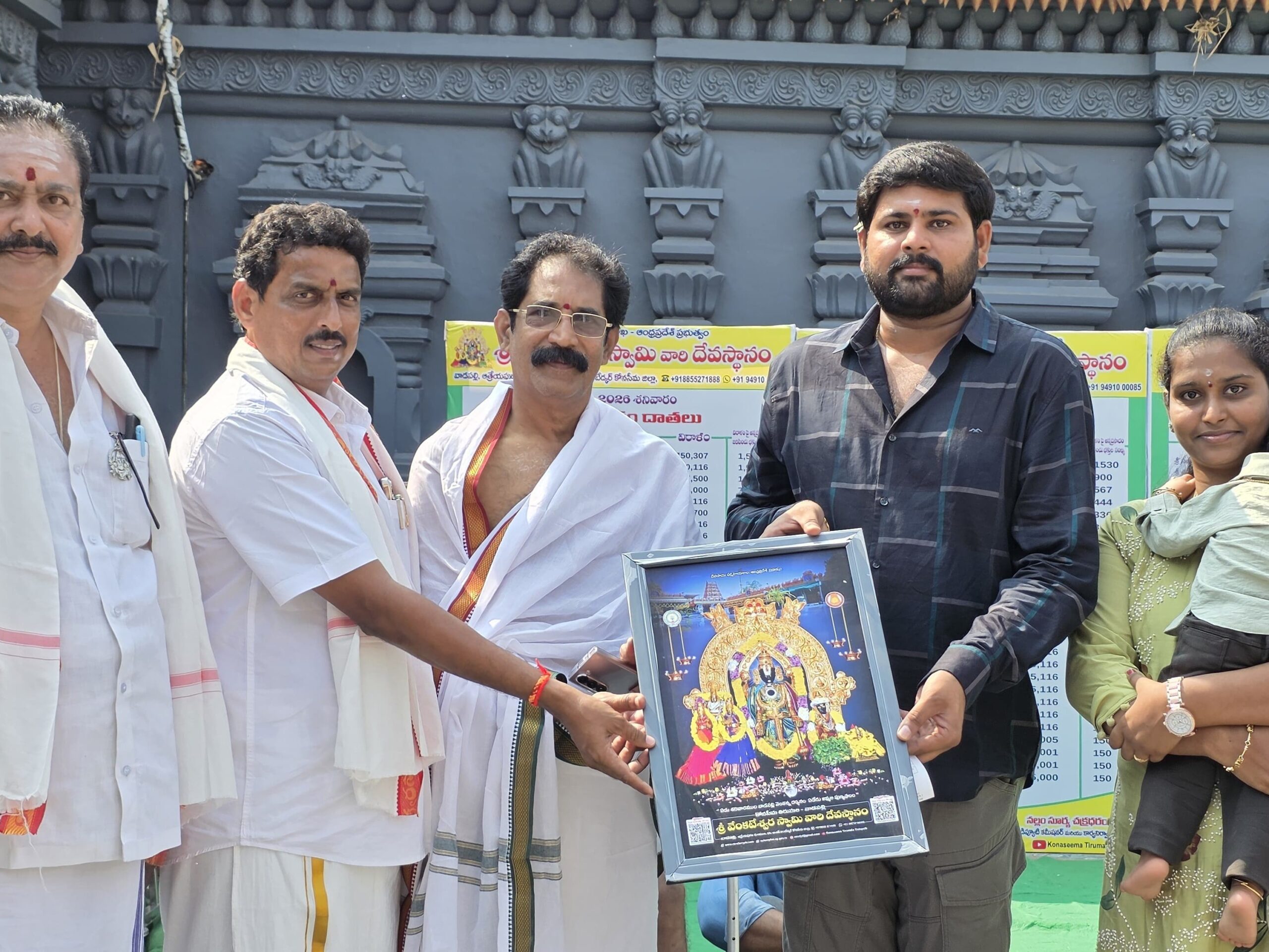 కోనసీమ: ఆత్రేయపురం మండలం వాడపల్లి శ్రీ వెంకటేశ్వర స్వామివారి సన్నిధిలో అమలు చేస్తున్న నిత్య అన్నదానం ట్రస్ట్కు శుక్రవారం రావులపాలెం మండలం ఈతకోట వాస్తవ్యులు కలిదిండి సాయి మణికంఠ కుటుంబ సభ్యులు రూ.50,000 విరాళం అందజేశారు. ఈ విరాళాన్ని ఆలయ డిప్యూటీ కమిషనర్ చక్రధరరావుకు అందజేశారు. ఆయన దాత కుటుంబానికి స్వామివారి చిత్రపటం అందజేశారు.
