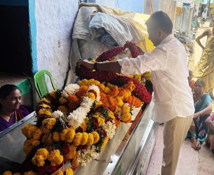 KRNL: అనారోగ్యంతో ఇవాళ మృతి చెందిన రాష్ట్ర కురువ కార్పొరేషన్ డైరెక్టర్ రామకృష్ణ తండ్రి కురువ బజారి మృతదేహాన్ని ఎంపీ బస్తిపాటి నాగరాజు సందర్శించారు. గోనెగండ్ల మండలం గాజులదిన్నె గ్రామంలో బజారి మృతదేహానికి పూలమాలలు వేసి నివాళులర్పించారు. అనంతరం కుటుంబ సభ్యులను పరామర్శించిన ఎంపీ, మృతికి గల అనారోగ్య కారణాలను అడిగి తెలుసుకున్నారు.