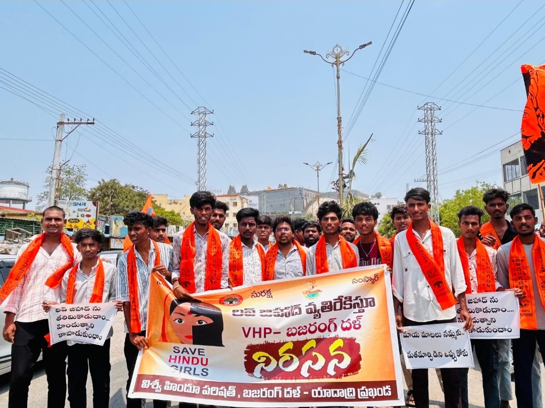 BHNG: విశ్వహిందూ పరిషత్, బజరంగ్ దళ్ ఆధ్వర్యంలో దేశంలో పెరుగుతున్న లవ్ జిహాద్, అక్రమ మత మార్పిడులకు వ్యతిరేకంగా నిరసన చేపట్టారు. ఈ సందర్భంగా వీహెచ్పీ జిల్లా ప్రచార ప్రముఖ్ పవన్ కుమార్ మాట్లాడుతూ.. ప్రణాళికాబద్ధంగా జరుగుతున్న ఈ కుట్రలను ప్రతి ఒక్కరూ ప్రశ్నించాలని పిలుపునిచ్చారు. యువతుల జీవితాలతో ఆడుకుంటున్న వికృత మనస్తత్వాలపై పోరాడాల్సిన అవసరం ఉందన్నారు.
