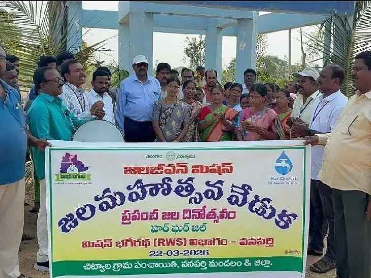 వనపర్తి మండలం చిట్యాలలో అంతర్జాతీయ జల దినోత్సవం సందర్భంగా మిషన్ భగీరథ ఆధ్వర్యంలో అవగాహన కార్యక్రమం నిర్వహించారు. ఈ ఏడాది ఐక్య రాజ్య సమితి ప్రకటించిన “నీరు, లింగ సమానత్వం” (Water and Gender) థీమ్పై సాంస్కృతిక సారధి కళాబృందం పాటల ద్వారా అవగాహన కల్పించారు. నీటిని ఆదా చేస్తూ, మహిళా సంక్షేమ పథకాలను సద్వినియోగం చేసుకోవాలని కోరారు.