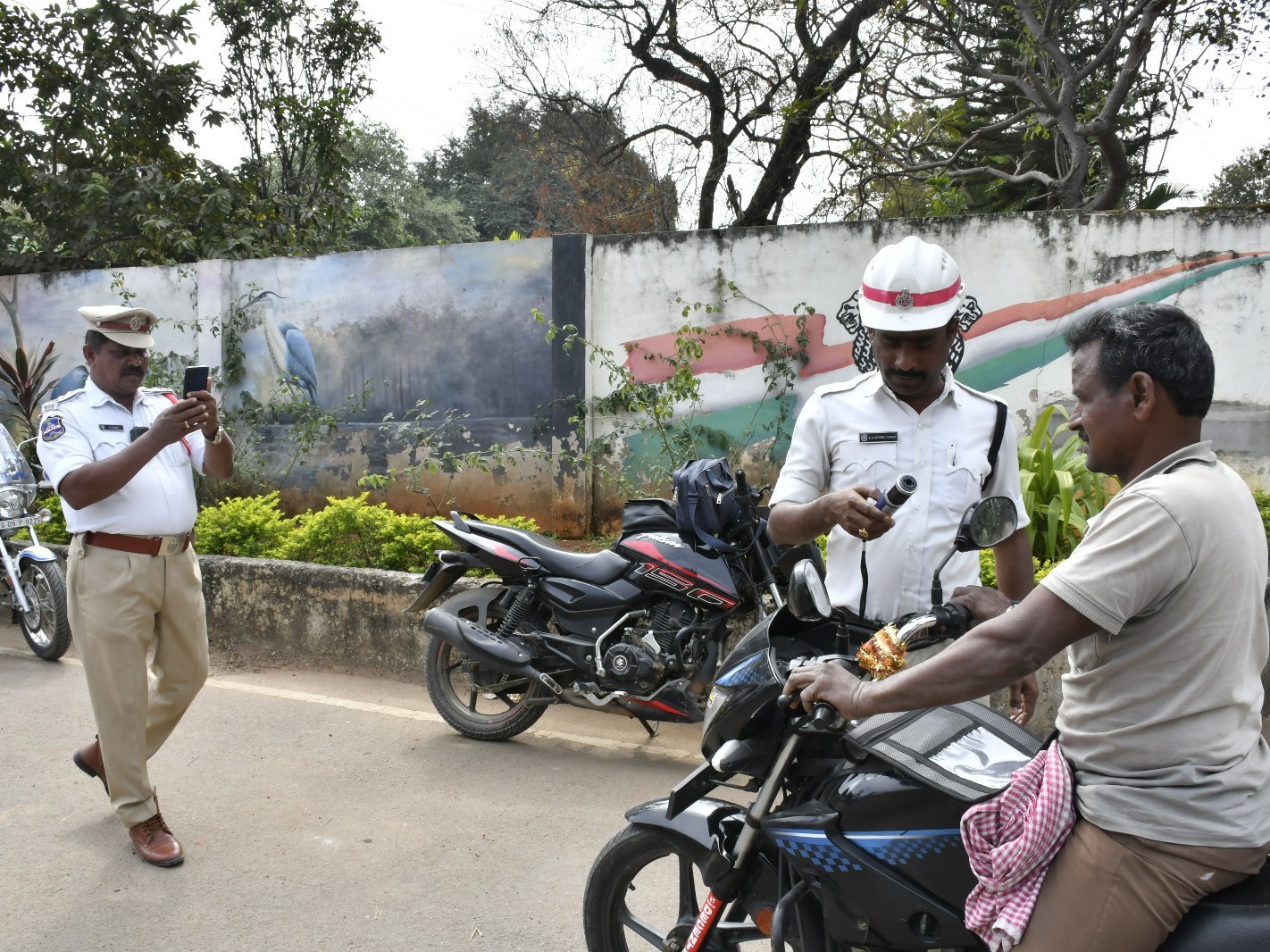 SRD: సంగారెడ్డి పట్టణంలో ట్రాఫిక్ సీఐ రామకృష్ణారెడ్డి ఆధ్వర్యంలో వాహన తనిఖీలు శనివారం నిర్వహించారు. హెల్మెట్ ధరించని ఎనిమిది మంది వాహనదారులకు జరిమానా విధించారు. ఆయన మాట్లాడుతూ.. బైక్ పై ప్రయాణించేవారు తప్పనిసరిగా హెల్మెట్ ధరించాలని సూచించారు. మరోసారి పట్టి పడితే కఠిన తీసుకుంటామని హెచ్చరించారు. కార్యక్రమంలో పోలీసు సిబ్బంది పాల్గొన్నారు.