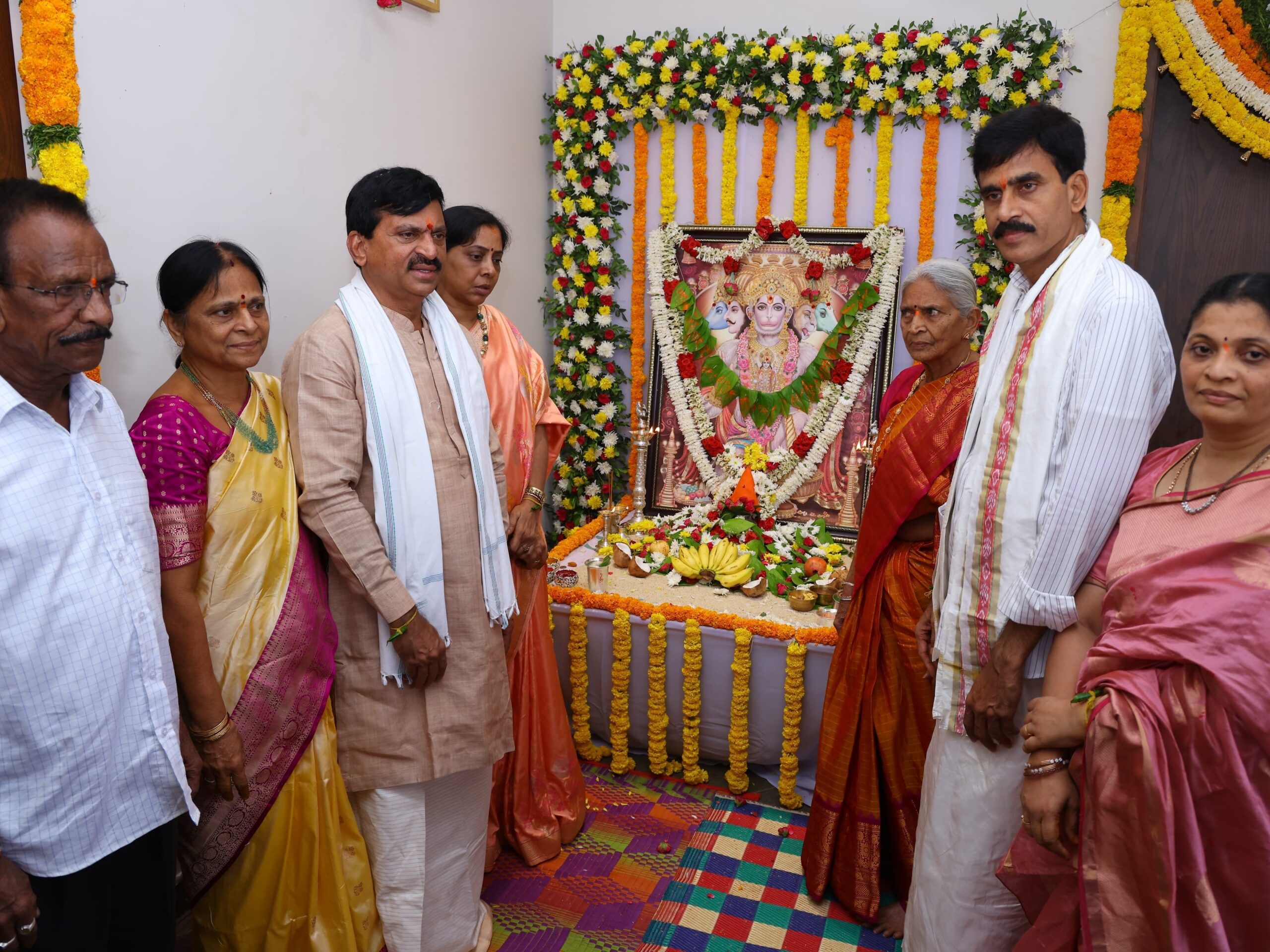 KMM: భక్తిశ్రద్ధలు ఆధ్యాత్మిక పరిమళాల మధ్య కల్లూరు మండలం నారాయణపురం గ్రామం పులకించిపోయింది. మంత్రి పొంగులేటి శ్రీనివాస రెడ్డి స్వగృహంలో హనుమాన్ చాలీసా పారాయణ ఘట్టం అత్యంత వైభవంగా సాగింది. మంగళవారం ఆంజనేయ స్వామి స్తోత్ర పారాయణంతో మంత్రి నివాసంలో భక్తిశ్రద్ధలతో నిర్వహించారు. యావత్ రాష్ట్ర ప్రజలపై అంజన్న ఆశీస్సులు ఉండాలని మంత్రి తెలిపారు.