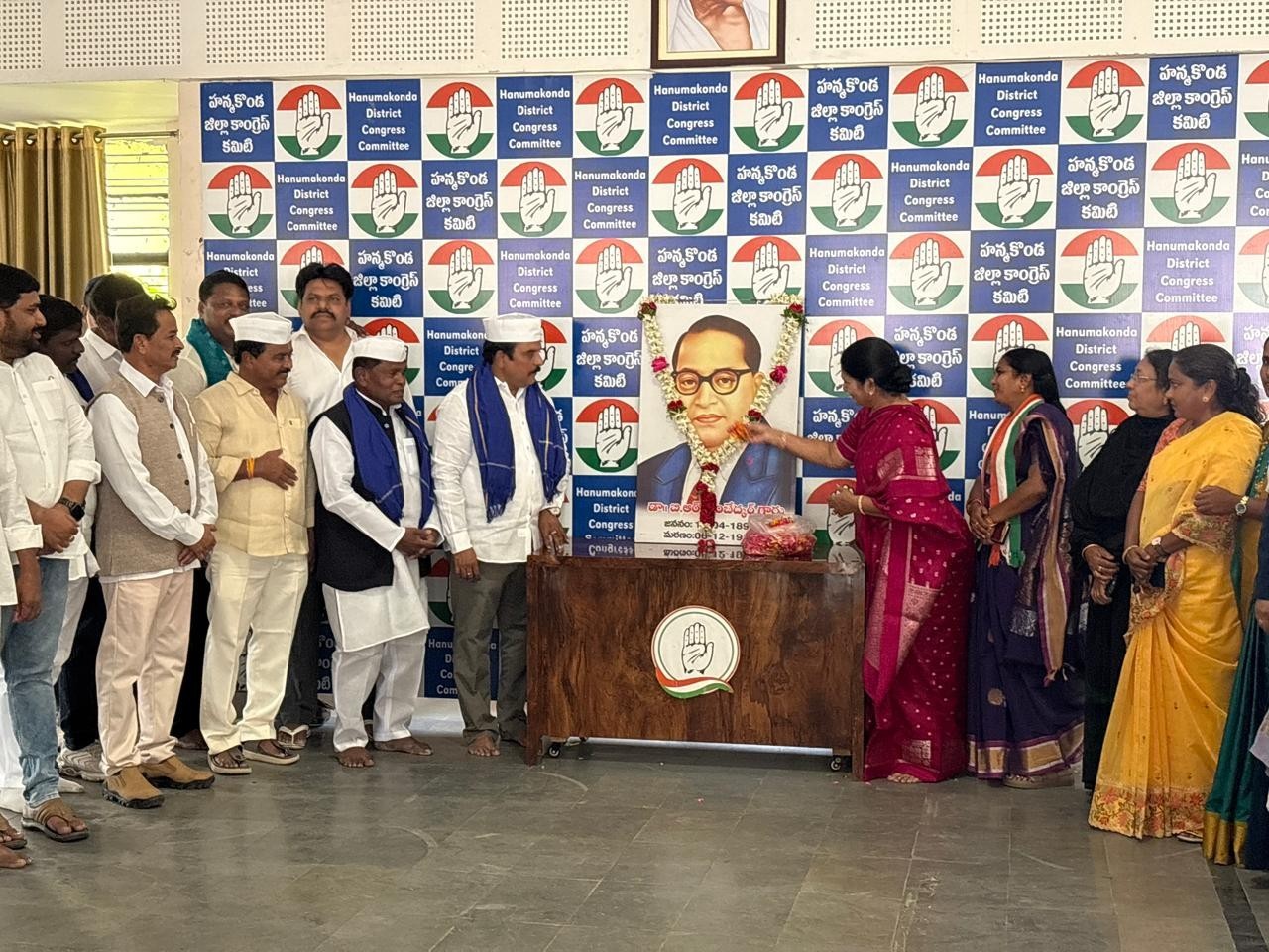 HNK: అంబేద్కర్ ఆశయ సాధనే కాంగ్రెస్ లక్ష్యమని DCC అధ్యక్షులు, కుడా ఛైర్మన్ ఇనగాల వెంకట్రామ్ రెడ్డి అన్నారు. భారత రాజ్యాంగ శిల్పి డాక్టర్ బాబాసాహెబ్ అంబేద్కర్ 135వ జయంతి వేడుకలు జిల్లా కాంగ్రెస్ కమిటీ ఆధ్వర్యంలో మంగళవారం ఘనంగా జరిగాయి. వెంకట్రామ్ రెడ్డి నేతృత్వంలో స్థానిక కాంగ్రెస్ నేతలు అంబేద్కర్ చిత్రపటానికి పూలమాలలు వేసి నివాళులర్పించారు.