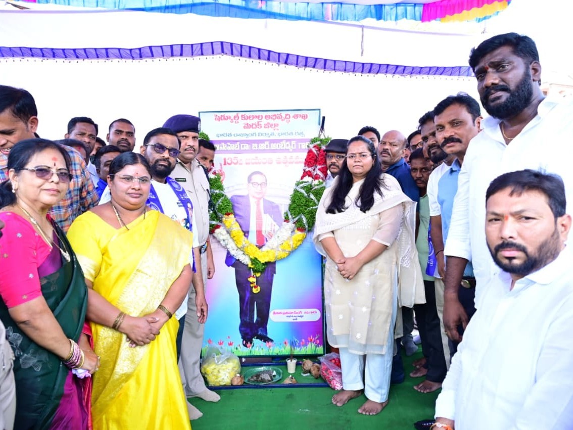 MDK: బడుగు బలహీన వర్గాల ఆశాజ్యోతి, భారత రాజ్యాంగ నిర్మాత డాక్టర్ బి.ఆర్. అంబేద్కర్ అడుగు జాడలలో నడుస్తూ ఆ మహనీయుని ఆశయాలను కొనసాగించాలని జిల్లా కలెక్టర్ ప్రతిమా సింగ్ అన్నా రు. అంబేద్కర్ జయంతి వేడుకలను ఎస్సీ కార్పొరేషన్ ఆధ్వర్యంలో రాందాస్ చౌరస్తాలో నిర్వహించగా, కలెక్టర్ ప్రతిమా సింగ్, ఎస్పీ శ్రీనివాసరావు పాల్గొన్నారు.
