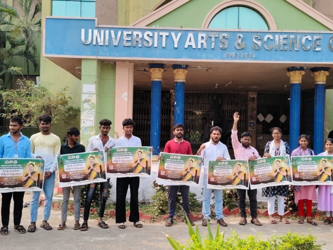 HNK: ఈనెల 25వ తేదీన జాగృతి అధ్యక్షురాలు కల్వకుంట్ల కవిత ఏర్పాటు చేయబోయే పార్టీ ప్రారంభోత్సవ కార్యక్రమానికి హనుమకొండ జిల్లా నుంచి ప్రజలు అధిక సంఖ్యలో తరలిరావాలని జాగృతి జిల్లా అధ్యక్షుడు శ్రీశైలం అన్నారు. సుబేదారిలోని ఆర్ట్స్ అండ్ సైన్స్ కళాశాలలో పార్టీ ఆవిర్భావానికి సంబంధించిన పోస్టర్లను వారు ఆవిష్కరించారు. డాక్టర్ బోడ అనిల్ కుమార్, పృద్వి ఉన్నారు.
