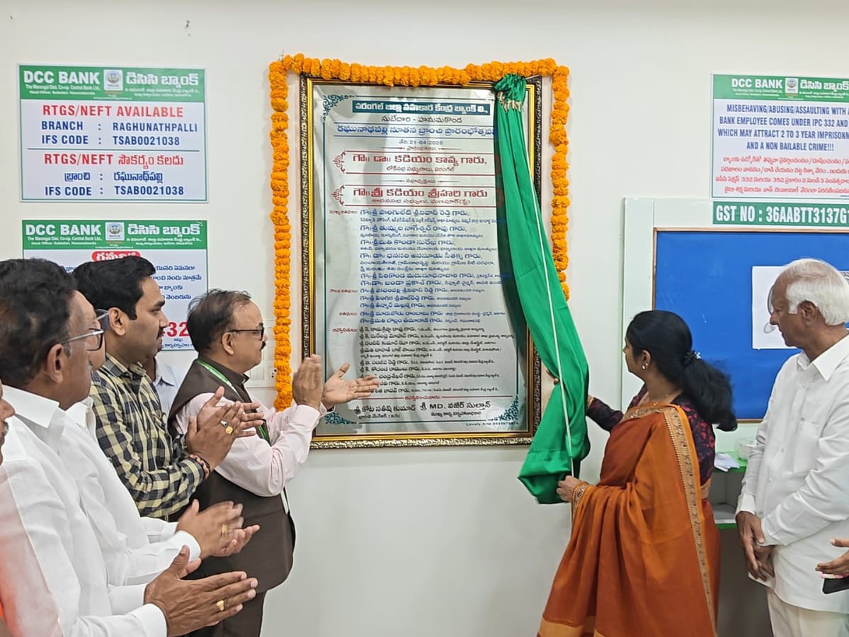 జనగామ జిల్లా రఘునాథపల్లి మండల కేంద్రంలో డిస్ట్రిక్ట్ కో-ఆపరేటివ్ సెంట్రల్ బ్యాంక్ నూతన బ్రాంచ్ ను ఇవాళ వరంగల్ పార్లమెంట్ సభ్యురాలు డాక్టర్ కడియం కావ్య ప్రారంభించారు. ఈ సందర్భంగా ఆమె మాట్లాడుతూ.. కోఆపరేటివ్ బ్యాంకును రైతులు సద్వినియోగం చేసుకోవాలని కోరారు, ఎమ్మెల్యే కడియం శ్రీహరి తో పాటు అధికారులు పాల్గొన్నారు.